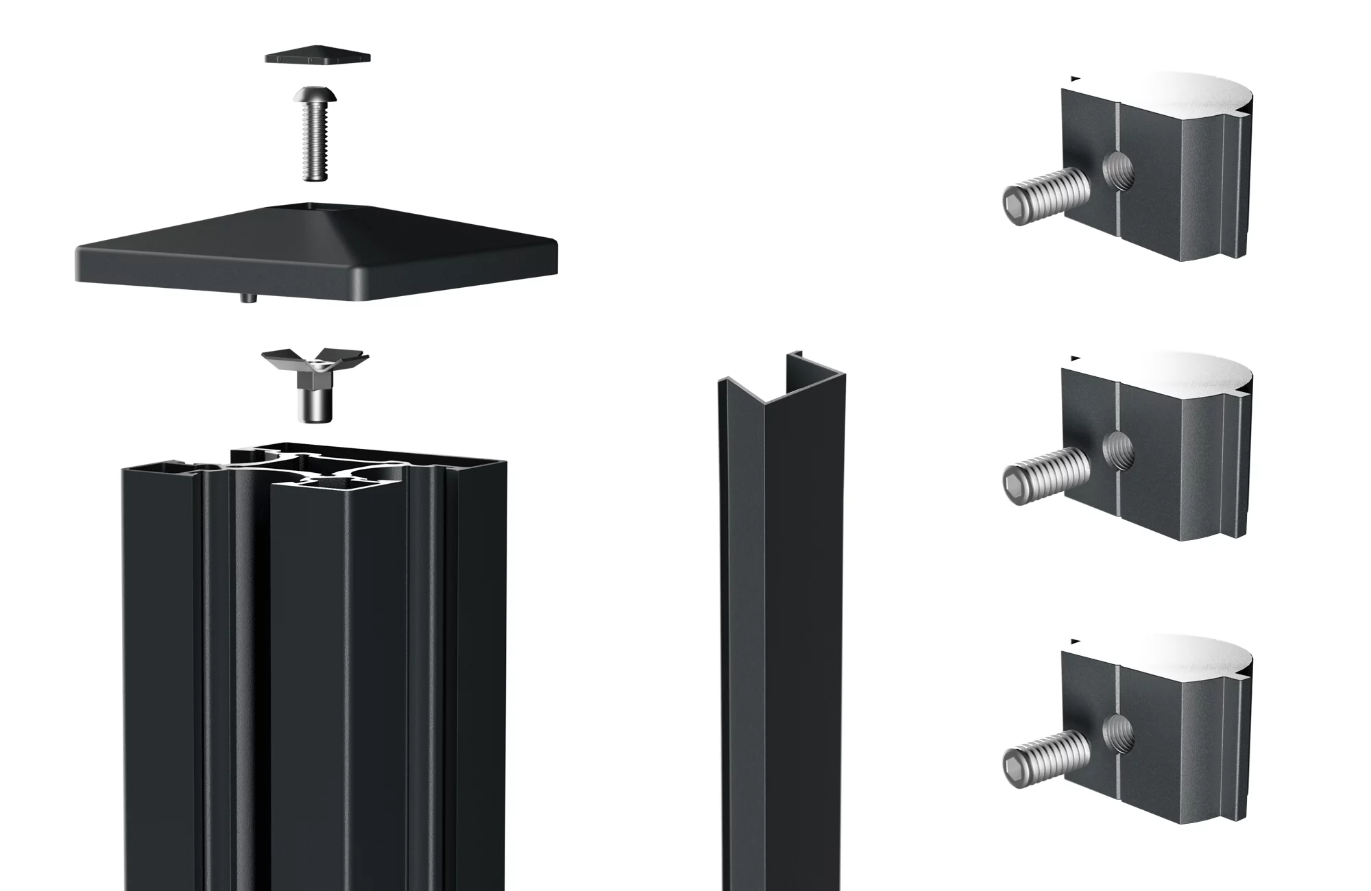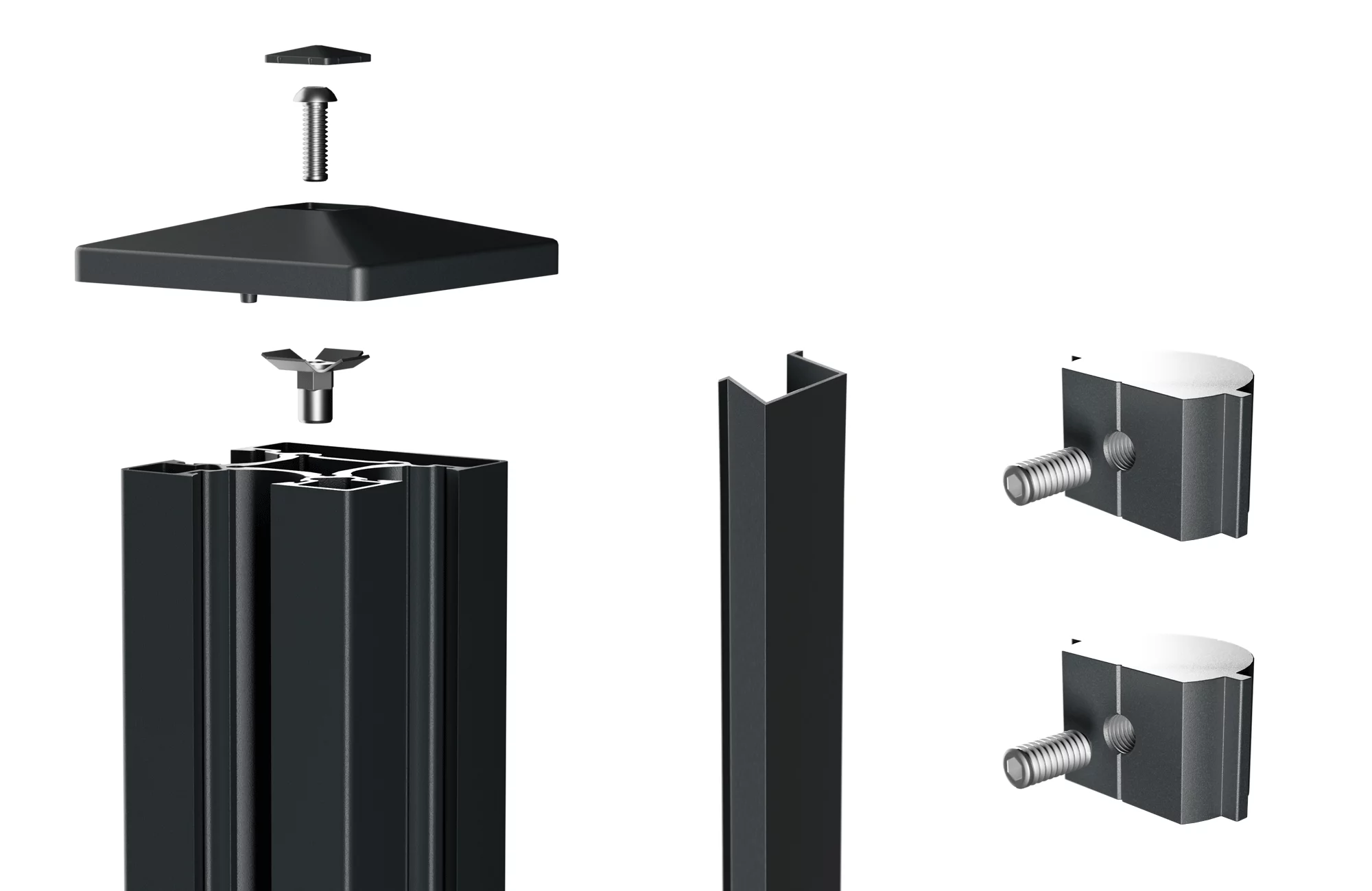 VIDUAL Mittelpfosten inkl. Abdeckkappe, End-Nutensteine und Abdeckleisten Maße: 90/90mm für Zaunhöhen: 1000 mm bis 1800 mm Pfostenlängen: 1040 mm bis 2400 mm aus Aluminium pulverbeschichtet in RAL7016FS (Anthrazitgrau Feinstruktur) inkl. Zubehör Beim Pfosten zum Aufdübeln ist die Fußplatte separat zu bestellen.