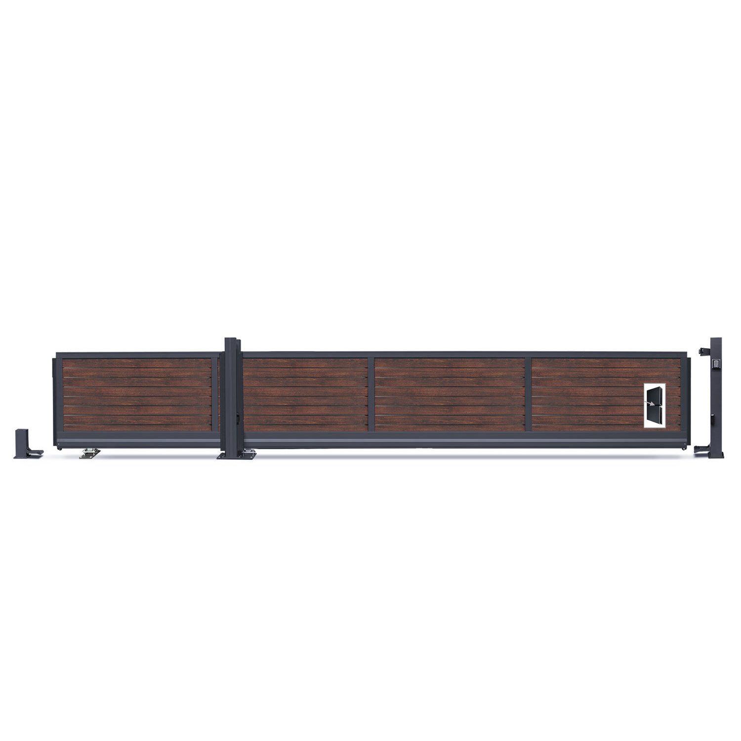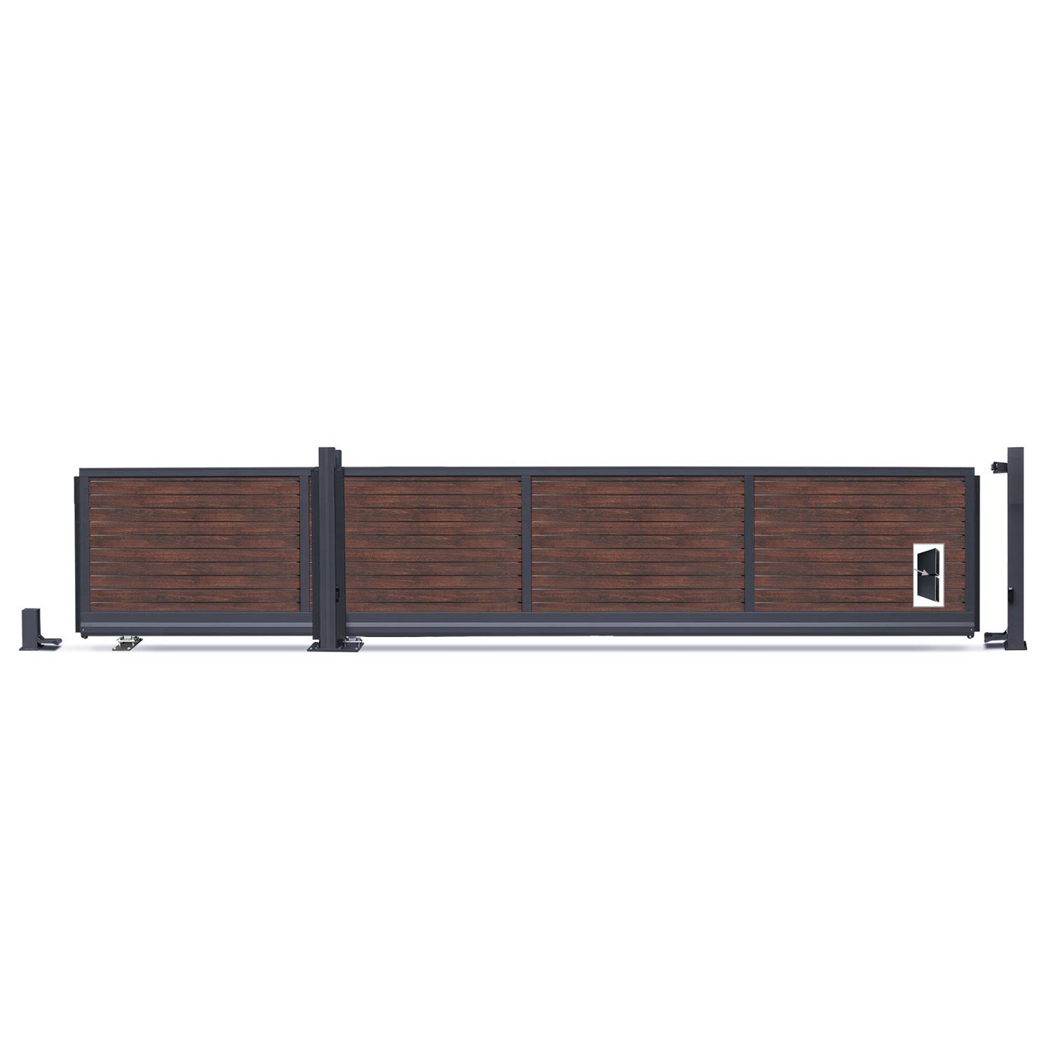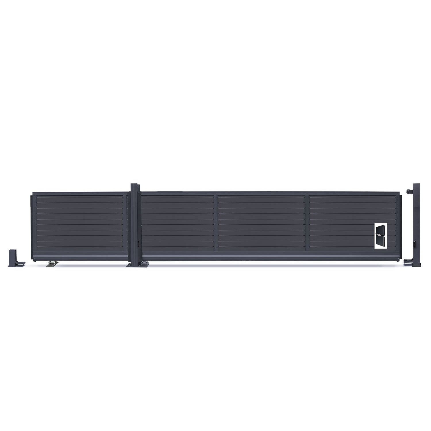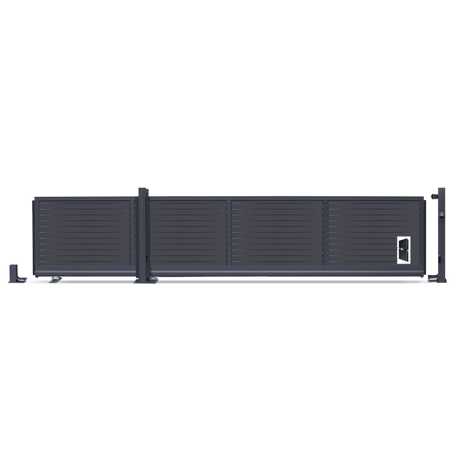 Das Schiebetor ist freitragend und kann problemlos auf einer Grundplatte montiert werden. Du erhältst zudem einen Einlaufpfosten, der aufgedübelt wird. Mit dem stabilen Antriebssystem ist die Installation für jeden Heimwerker ein Kinderspiel.