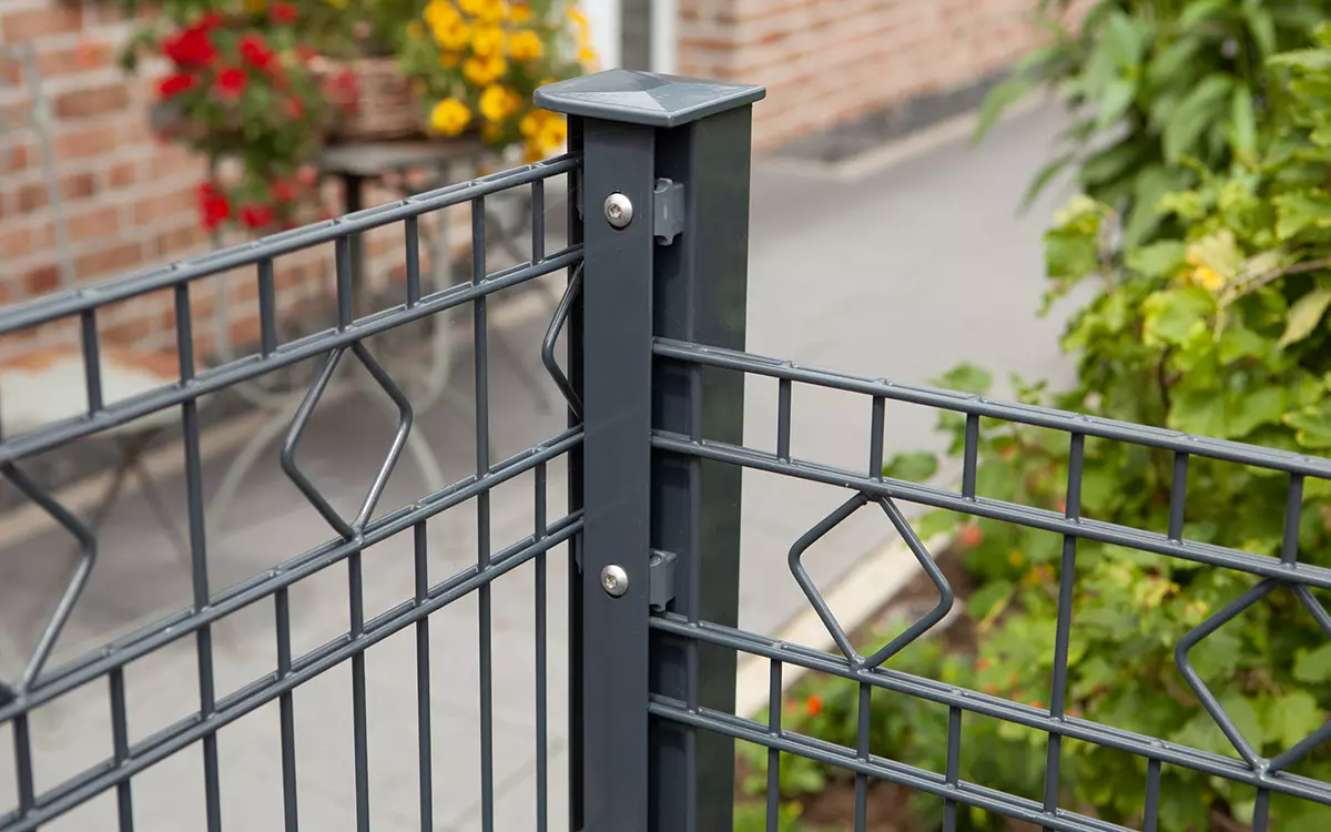 Eck-Zaunpfosten Typ AA – mit Alukappe und Flacheisenleiste