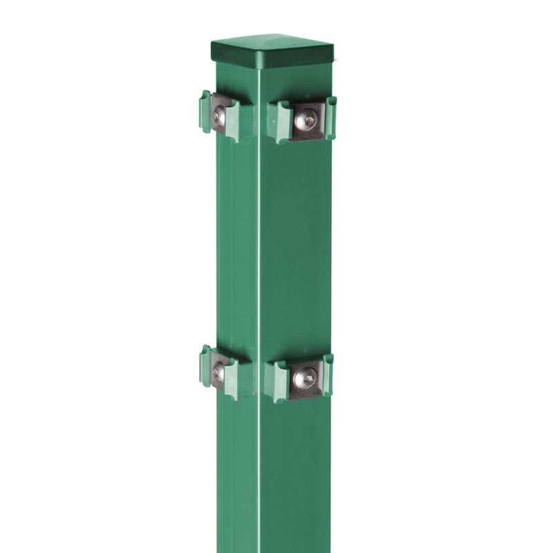 Technische Daten Längen: von 1300 mm – 2600 mm Stahl feuerverzinkt (nach DIN1461) oder verzinkt / pulverbeschichtet Farben: zink, RAL6005 (moosgrün), RAL7016 (anthrazit) Rechteckrohr: 60/60/2 mit Edelstahlklemmplättchen und Kunststoffkappe