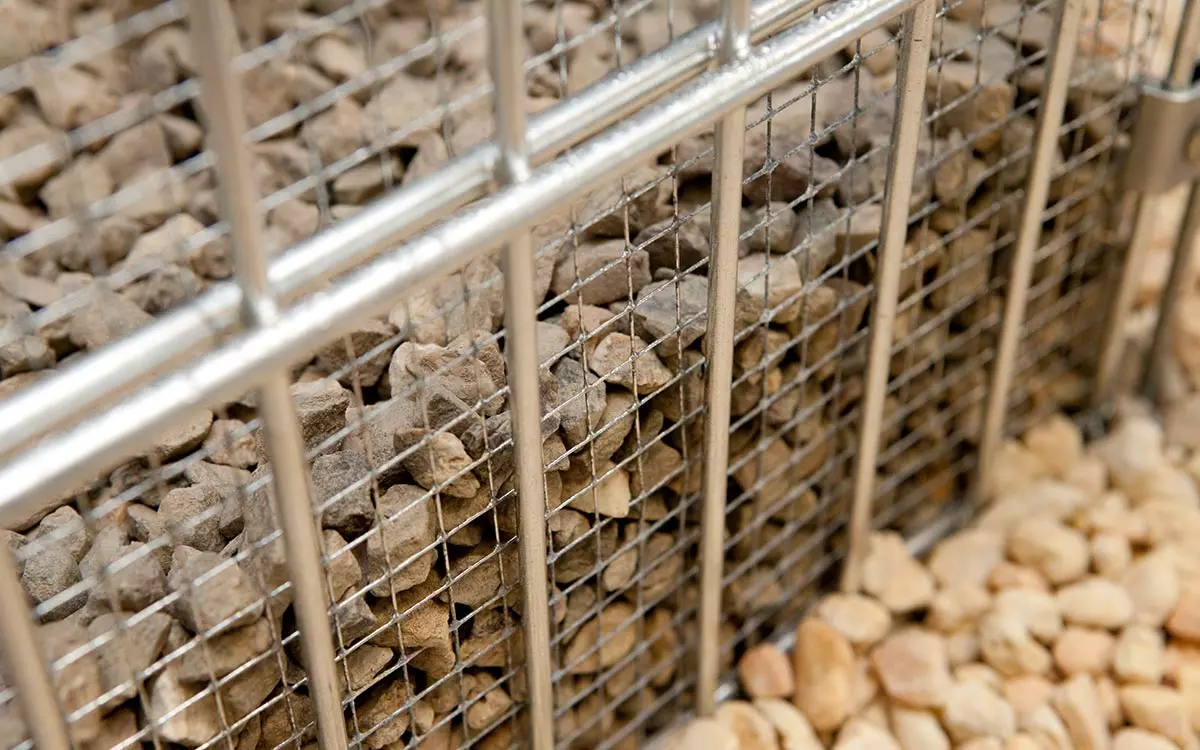 Gabionensystem-Gitterrolle für unseren Gabionensysteme mit Maschung 50 x 200mm, um Füllungen mit kleinerer Körnung realisieren zu können. Höhe:1000mm Länge: 25m Maschung: 12,7 x 12,7mm Drahtstärke: 0,8mm feuerverzinkt