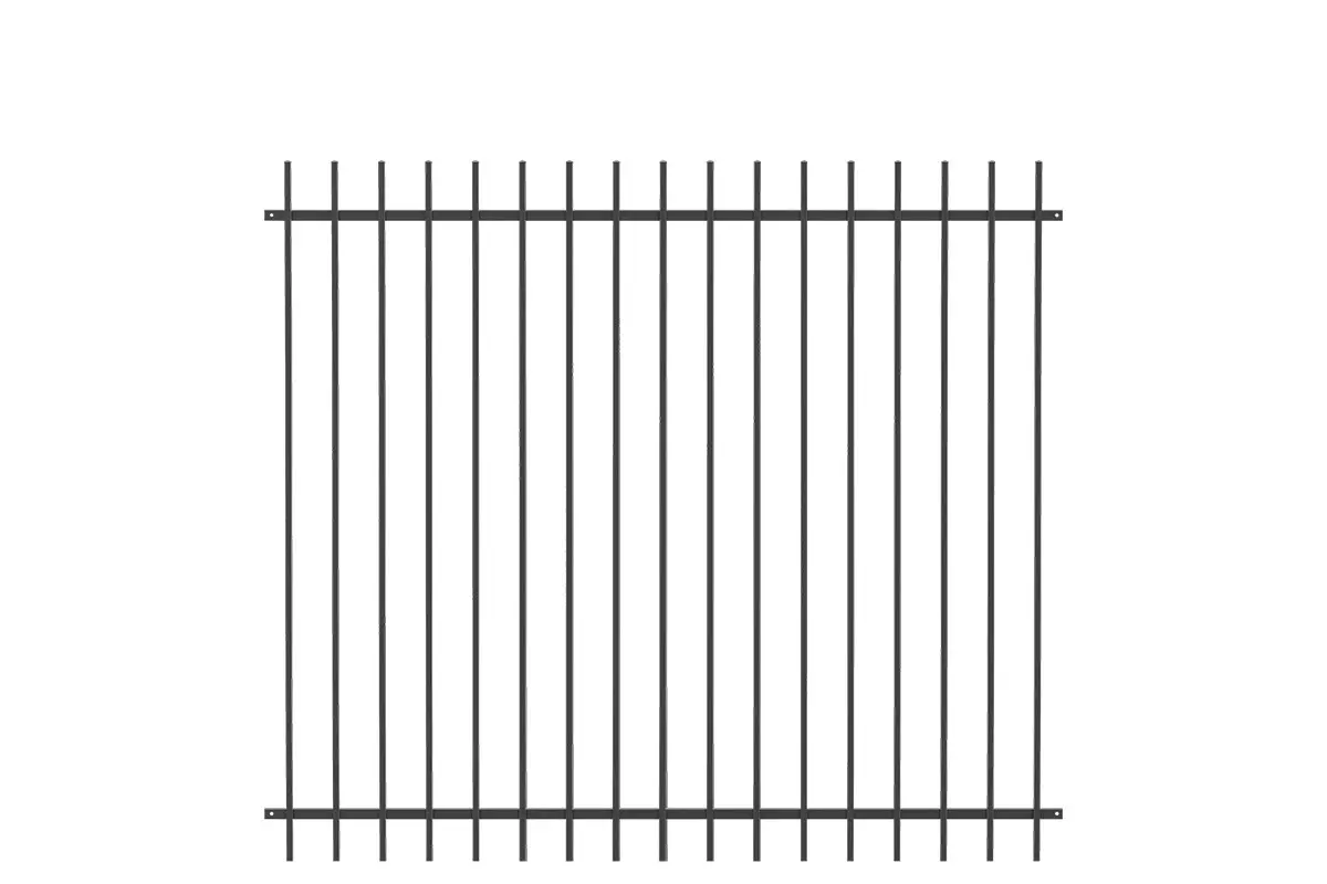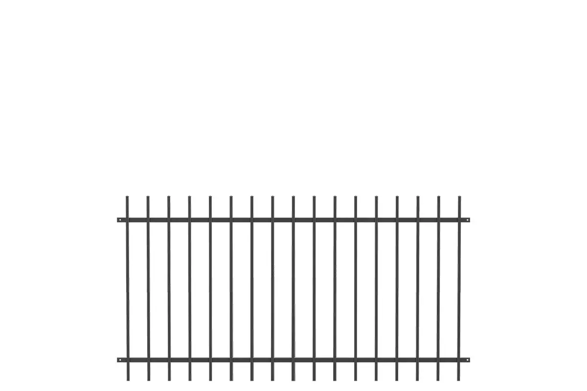 Schmuckzaun – Residenzen select – BRIENZ Stababstand: ca. 112mm Stabstärke: 15 mm mit beiliegenden Kunststoff-Kappen 15×15 mm feuerverzinkt und pulverbeschichtet DB703 (Feinstruktur Dunkelgrau)