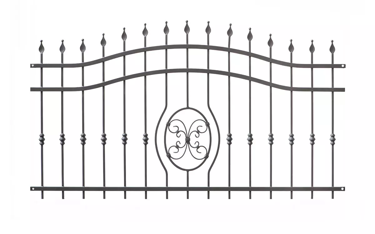 Technische Daten: Bogen mit runden Verzierungen Höhen: 1000 mm, 1200 mm, 1500 mm, 1800 mm feuerverzinkt und hochwertig mit DB703 Eisenglimmer pulverbeschichtet Vierkant 12 x 12 mm Flacheisen 25 x 5 mm Stababstand 120 mm maximale Feldbreite: 2000 mm Breite auf individuelles Maß möglich Mit der Schmuckzaunserie Residenzen premium hat A1 ZAUNDISCOUNT einen hochwertigen Schmiedezaun im Programm. Die Zaunserie mit klassischem Charakter bietet elf verschiedene Modelle zur Auswahl. Die Zaunelemente sind feuerverzinkt, nach DB703 pulverbeschichtet und verfügen je nach Modell über angeschmiedete Spitzen. Durch die variable Befestigungsmöglichkeit ist auch ein Höhenausgleich bei Gefälle einfach zu realisieren. Die Zaunelemente können individuell konfiguriert und somit genau nach den Anforderungen des Kunden auf Maß gefertigt werden. Zu jedem Zaunmodell sind einflügelige Gartentore und zweiflügelige Einfahrtstore erhältlich. Darüber hinaus bietet A1 ZAUNDISCOUNT auch Schiebetore aus eigener Fertigung mit dem gewünschten Schmiedezauntyp als Füllung an.