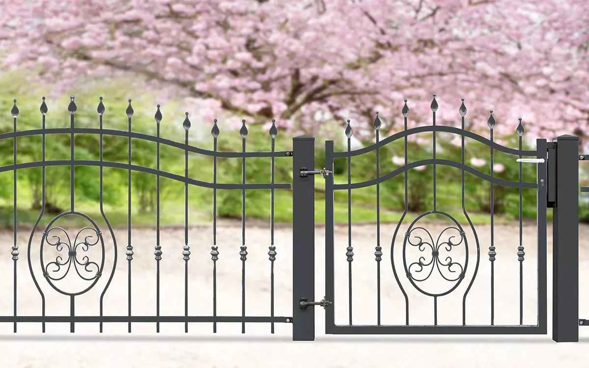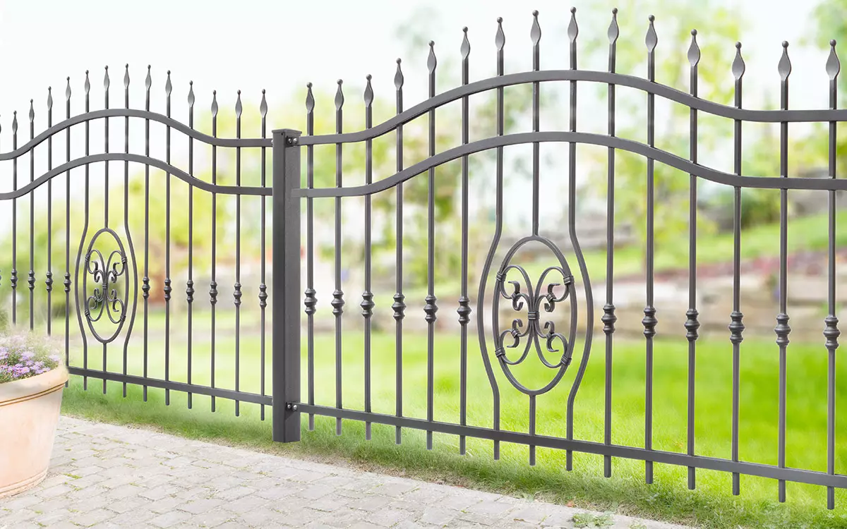 Technische Daten:Bogen mit runden Verzierungen Höhen: 1000 mm, 1200 mm, 1500 mm, 1800 mm feuerverzinkt und hochwertig mit DB703 Eisenglimmer pulverbeschichtetVierkant 12 x 12 mmFlacheisen 25 x 5 mmStababstand 120 mm maximale Feldbreite: 20…