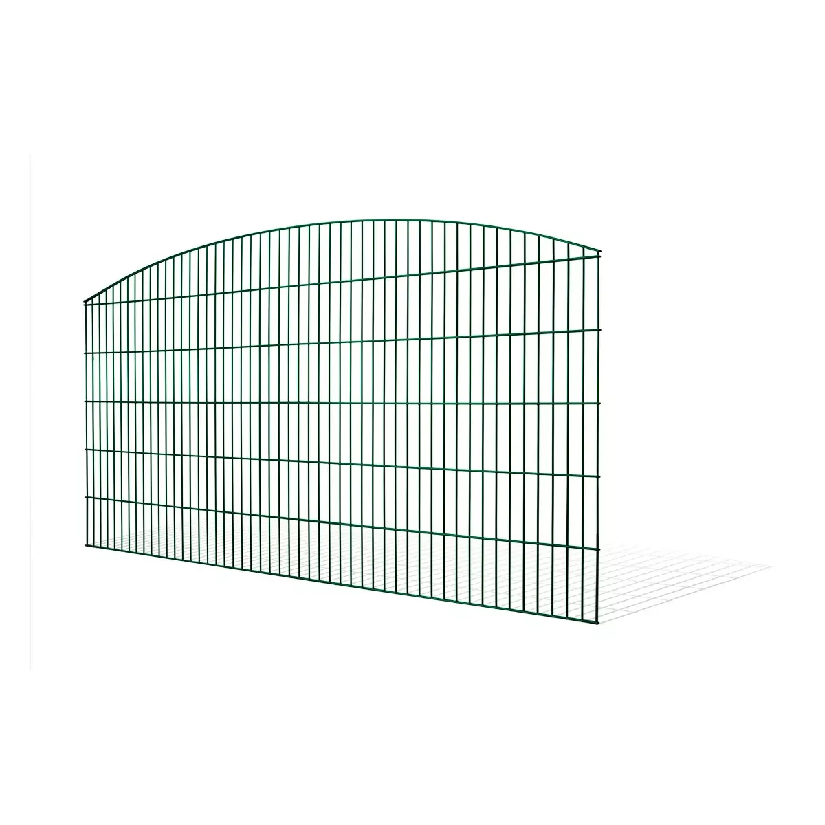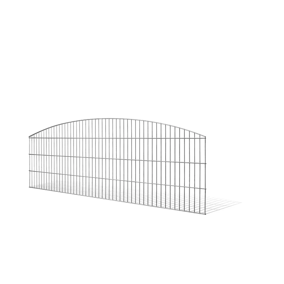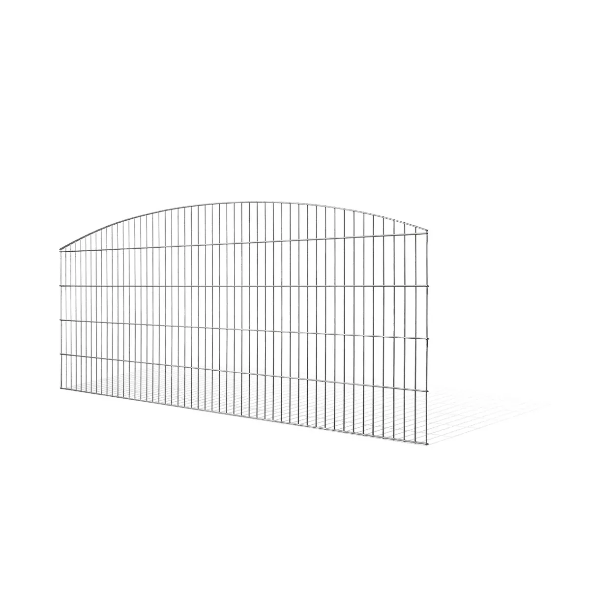 Die Höhe des Zauns wird in der Mitte des Bogens gemessen, wobei die Gittermatten am Ende um 200 mm abfallen. Achte darauf, die passenden Pfosten in den Höhen 630 mm, 830 mm oder 1030 mm auszuwählen, um eine optimale Stabilität zu gewährleisten.