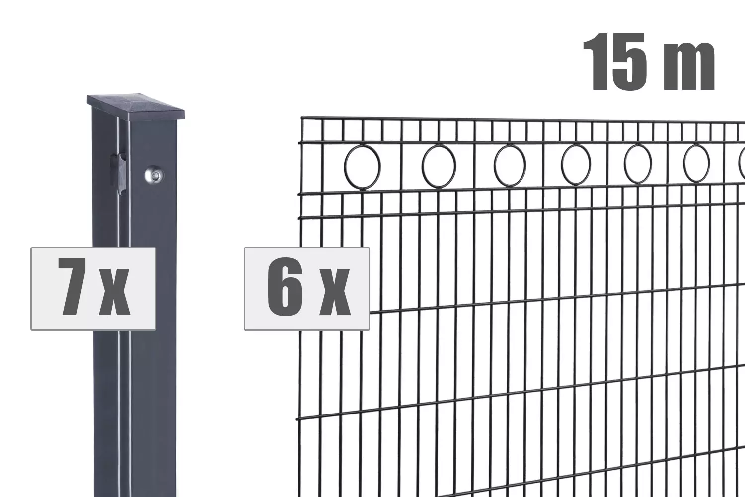 Technische Daten: Breite: 2510 mm Höhen von 830 mm bis 1230 mm Drahtstärke: 6/6/6 mm Maschenweite: 50/200 mm Farbe/Oberfläche: feuerverzinkt und pulverbeschichtet Die Doppelstabgittermatte ROM bietet kreisförmige Zierelemente und eine Drahtstärke von 6 mm waagerecht und 6 mm senkrecht. Sie können den Schmuckzaun ROM in den Höhen 830 mm, 1030 mm und 1230 mm ab Lager erhalten, andere Höhen können Sie auf Anfrage bestellen. Die Doppelstabmatte hat eine Länge von 2510 mm. ROM präsentiert sich als dezenter und stilsicherer Schmuckzaun. Individuell einsetzbar sichert dieser Zaun ihre Privatsphäre. Im obersten Segment befinden sich kleine kreisförmige Zierelemente, die durch waagerechte Einfassungen hervorgehoben werden. Der moderne Zaun besteht aus hochwertigem Doppelstabgitter und massiv miteinander verschweißten Stahldrähten. Das Zaunmodell ist feuerverzinkt oder in den RAL Farben moosgrün beschichtet und anthrazitgrau beschichtet erhältlich. Sonderfarben oder Effektfarben auf Anfrage. Verarbeitungshinweise: Der Schmuckzaun ROM bietet Ihnen den höchsten Korrosionsschutz durch Feuerverzinkung im Tauchbad nach EN ISO 1461 und bei den RAL Farben durch zusätzliche Pulverbeschichtung. Bei einer feuerverzinkten Gittermatte kann man bei normalen Witterungsbedingungen davon ausgehen, dass es 30 Jahre dauert, bis die schützende Zinkschicht abgetragen ist. Sind die Gittermatten zusätzlich in RAL Farben kunststoffbeschichtet, erhöht sich der Schutz um viele weitere Jahre. Den zur Schmuckgittermatte passenden Pfosten erhalten Sie ebenfalls bei uns. Hinweise zur Sicherheit: Bitte kontaktieren Sie hierzu sowie bei allen anderen Fragen gerne unsere Verkäufer. Diese beraten Sie kompetent und unverbindlich in allen Fragen rund um Ihre neue Zaunanlage!