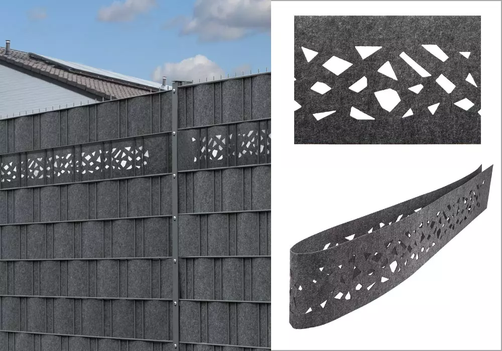Mit diesem vorkonfektionierten Zierstreifen lassen sich besondere Akzente setzen. Das gelaserte Muster „Oval“ zeichnet sich durch die verschiedenen großen Ellipsen aus, während das Muster „ Mikado “ gekonnt geometrische Figuren miteinander vereint. Ein Zierstreifen weist eine Länge von 2,60m auf, wobei der gelaserte Bereich eine Länge von 2,30m abdeckt. Erhältlich ist der 1,5mm starke Zierstreifen in der Farbe RAL 7024 (Graphitgrau). Passend dazu empfehlen wir Ihnen: 1) Zur Fixierung und Abschlussbildung des Sichtschutzes empfehlen wir unsere Klemmschienen mit dazu zu bestellen. 2) Um Ihnen noch mehr Stabilität im Pfosten bieten zu können, empfehlen wir bei jedem Einsatz von Sichtschutzprodukten unser bewährtes Pfostenverstärkungsprofil. 3) Zur Abdeckung des Spaltes im Doppelstab-Gitter zwischen dem vorletztem Senkrechtstab und dem Zaunpfosten, empfehlen wir die Nutzung unserer Sichtschutz-Spaltleiste sowie zur Abdeckung des Spaltes im Drehflügel-Tor zwischen dem vorletzten Senkrechtstab und dem Torrahmen, empfehlen wir die Nutzung unserer MAZU fix-Sichtschutz-Klemmleiste. Unsere gut geschulten Verkaufsberater beraten Sie diesbezüglich gern und helfen Ihnen auch dabei, aus unserer breiten Angebotspalette den für Ihr Zaunmodell und Ihre Zwecke optimalen Sichtschutz auszuwählen. Sprechen Sie uns an, wir beraten Sie gerne!