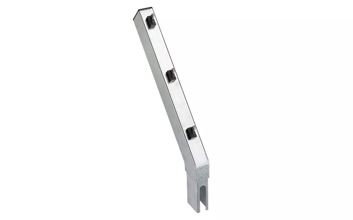 Stacheldrahtabweiser für Rechteckpfosten 60x40mm, abgewinkelt im 45° Winkel, Länge= 0425mm, zum Aufstecken auf vorhandenen Pfosten, inkl. 3x Spanndrahthalter, Pfostenabdeckung, Farben: feuerverzinkt, verzinkt und pulverbeschichtet RAL6005 (grün), verzinkt und pulverbeschichtet RAL7016 (anthrazit)