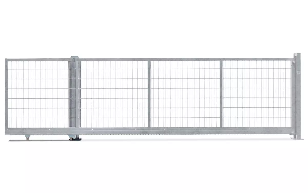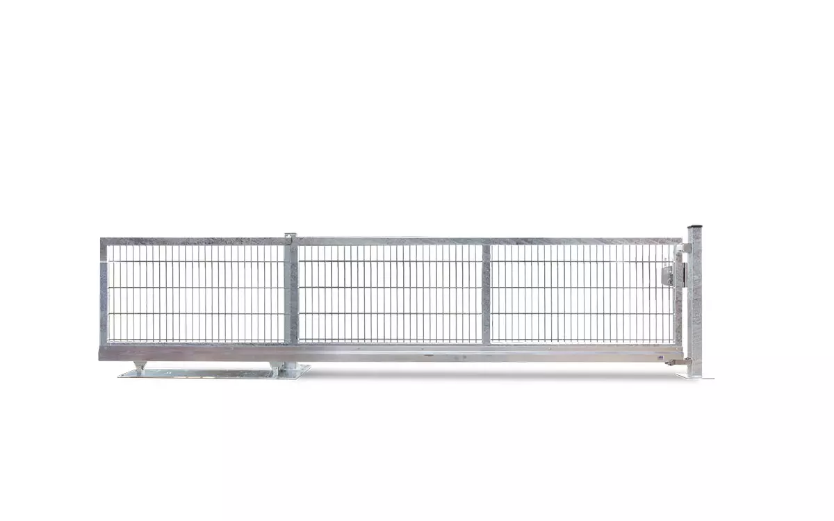 Technische Daten: in geschweißter Konstruktion mit Aluminium Laufrollenprofil Typ LRP 83A Rollenböcke als doppelte Tragrollenausführung, kugelgelagert Füllung: MAX 8/6/8 lichte Weiten : 3500 mm und 4500 mm Höhe (inkl. Bodenfreiheit) : 1000 mm bis 2000 mm Einlaufpfostenpaar zum Aufdübeln mit Einlaufgabel und Auflaufschuh Führungspfosten auf Laufwerksgrundplatte montiert Fundamentplan & Montageanleitung Das V-Star F60 ist ein leichtes Schiebetor für den privaten Einsatzbereich, das durch Vielseitigkeit, ausgeklügelte Technik und eine ansprechende Optik überzeugt. Es kann durch seine ausgezeichnete Balance und Leichtläufigkeit problemlos von Hand bewegt werden. Die manuelle Version verfügt serienmäßig über ein Locinox-Schiebetorschloß und kann nachträglich mit einem elektrischen Antrieb und Fernbedienung ausgestattet werden. Die elektrische Version besitzt einen Belfox-Antrieb, der über Funk oder andere Schaltelemente gesteuert wird. Das Tor wird vormontiert und bereits im Werk getestet. Schiebetor Montage vor Ort „Ist das Tor vor Ort, schraubt man die Bodenplatte und den Einlaufpfosten auf das Fundament – mehr Arbeit hat man nicht mehr.“