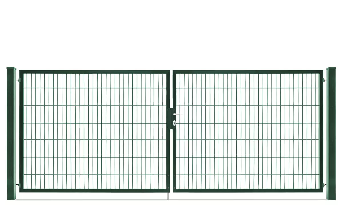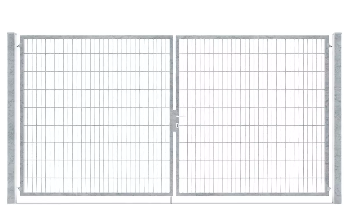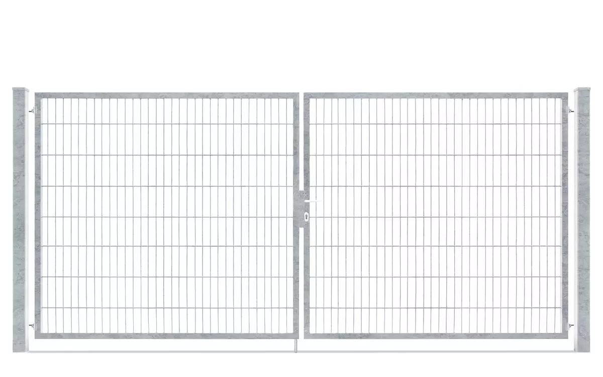 Technische Daten: Torhöhen: 800 mm – 2000 mm Variante: 2-flügelige Toranlage Lichte Weiten: 1960 mm – 3560 mm Rahmen: Quadratrohr 40/40/2 mm Füllung: Doppelstabfüllung 6/5/6 mm Torpfosten: Quadratrohr 80/80/3 mm Antrieb: Manuell Zaunanschluss: Optional inklusive passendem Zubehör-Set feuerverzinkt *** Einbaumaße siehe Aufbauanleitung *** Das zweiflüglige Einfahrtstor VARIO compact lässt Sie die Öffnungsrichtung nach DIN links und rechts durch entsprechende Pfostenmontage bestimmen. Darüber hinaus besteht durch den innovativen Anschlag die Möglichkeit, den Öffnungswinkel zwischen 90° und 180° frei zu wählen. Das variable Einfahrtstor kommt als Komplettpaket mit Doppelstabfüllung von 6/5/6 mm, einem Rahmen von 40/40 mm und den zugehörigen Torpfosten von 80/80 mm zu Ihnen nach Hause. Aus zahlreichen Torhöhen von 800 mm bis 2000 mm können Sie das für Sie passende Tor auswählen, das eine Breite von 200 – 356 cm hat. Das hochwertige Drehflügeltor, das sowohl für den privaten Gebrauch als auch für industrielle Zwecke geeignet ist, bietet die optimale Mischung aus leichtem Tor und professioneller Sicherheit. Wählen Sie Ihr neues Tor aus den Varianten feuerverzinkt oder den RAL Farben moosgrün beschichtet und anthrazit beschichtet aus. Auf Wunsch können Sie auch Sonderfarben oder Effektfarben erhalten. Die VARIO compact Tore werden mit 2 stabilen Pfosten, Alutürgriff, hochwertigem Rohrrahmenschloss inkl. Edelstahl-Stulp und Profilzylinder mit 3 Schlüsseln sowie verstellbaren Scharnieraufhängungen im Zubehör-Set mitgeliefert. Verarbeitungshinweise: Das VARIO compact Einfahrtstor bietet Ihnen den höchsten Korrosionsschutz durch Feuerverzinkung im Tauchbad nach EN ISO 1461 und bei den RAL Farben durch zusätzliche Pulverbeschichtung. Bei einer feuerverzinkten Toranlage kann man bei normalen Witterungsbedingungen davon ausgehen, dass es 30 Jahre dauert, bis die schützende Zinkschicht abgetragen ist. Sind die Tore zusätzlich in RAL Farben kunststoffbeschichtet, erhöht sich der Sch