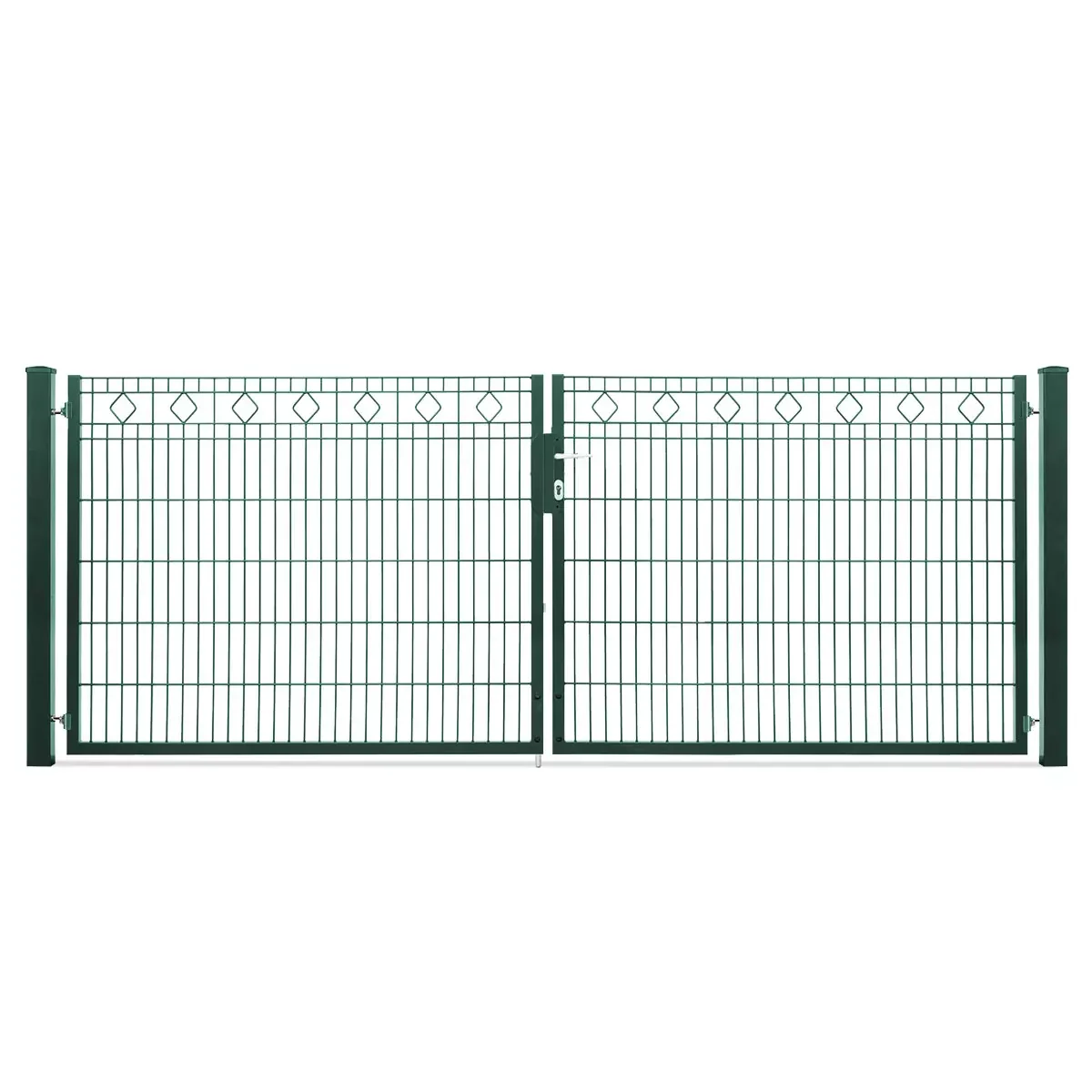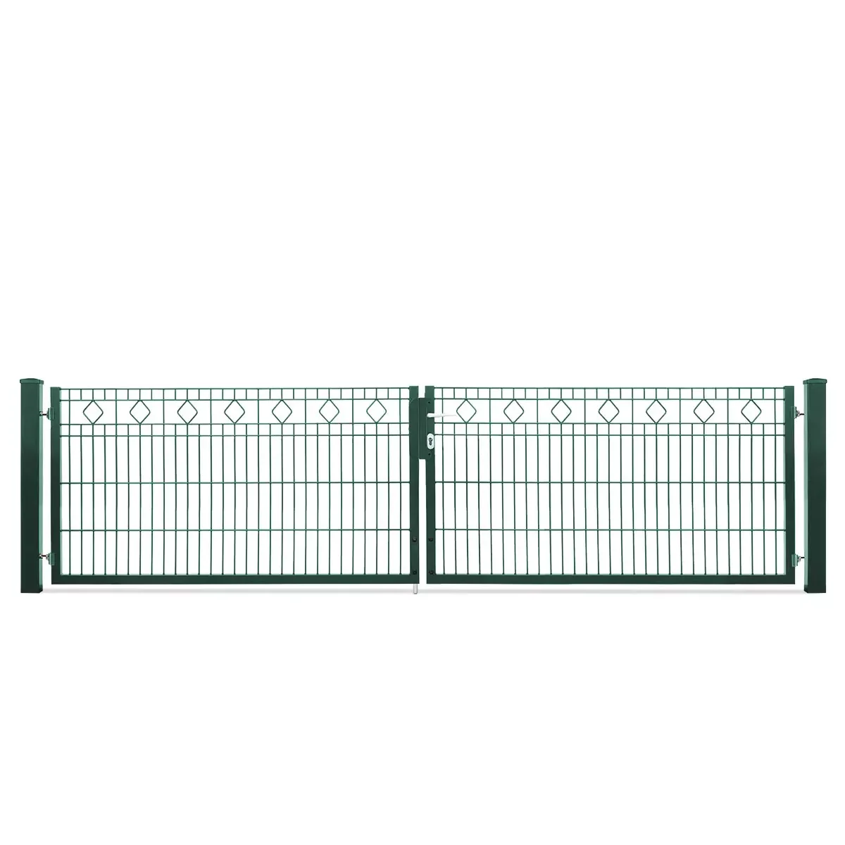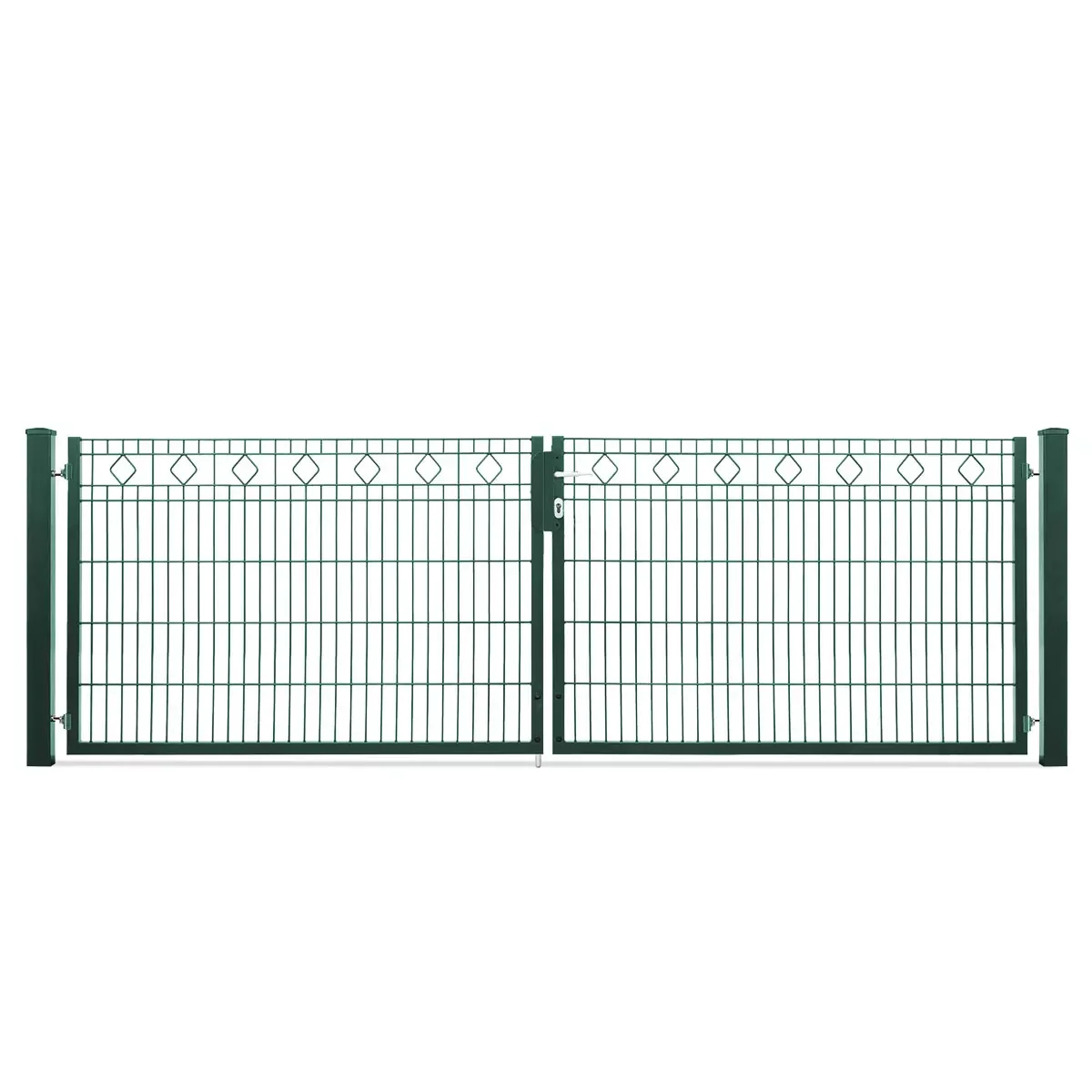Das Tor besteht aus einer hochwertigen Doppelstabgitter-Konstruktion mit einer Schmuckzaunfüllung für zusätzliche Stabilität.