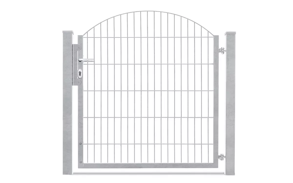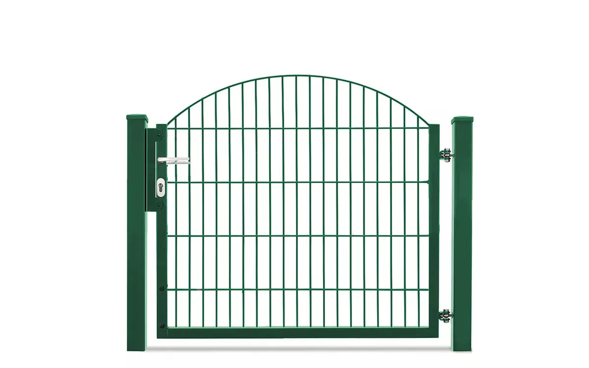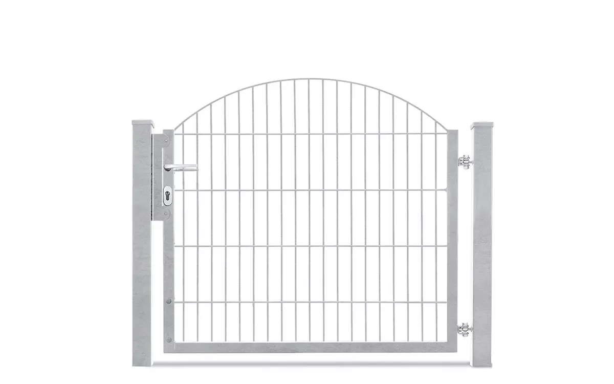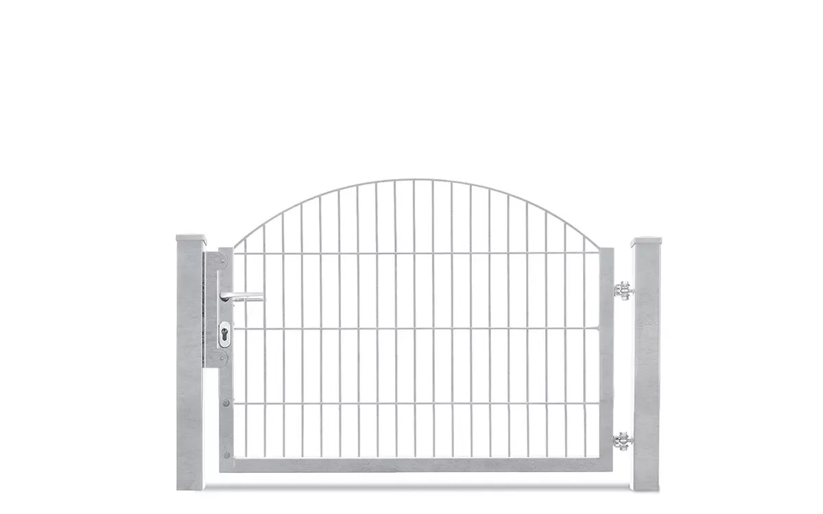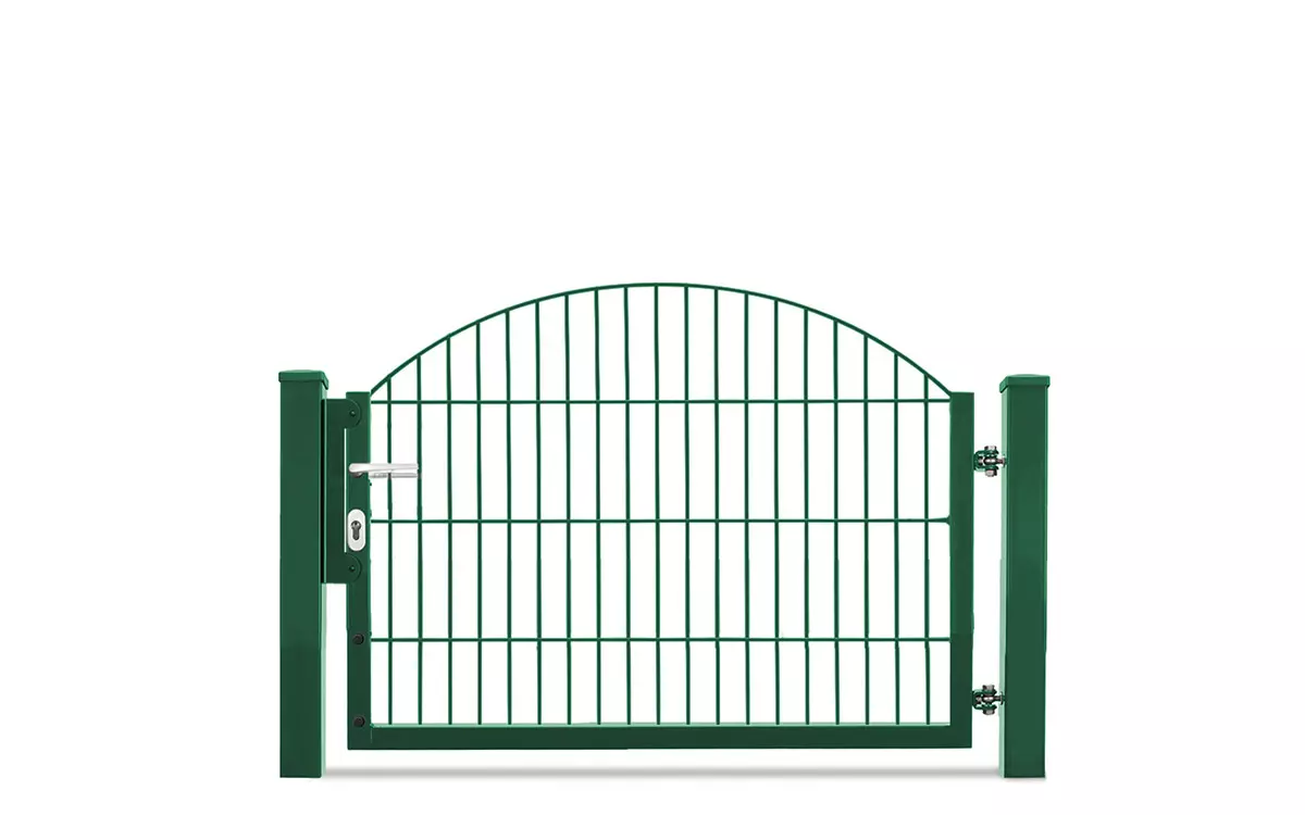 Technische Daten: mit U-Rahmen Torhöhen von 0830 mm – 1230 mm Variante= 1-flügelige Toranlage Öffnungsrichtung: 180°, Lichte Weite= 1170 mm Öffnungsrichtung: 90°, Lichte Weite= 1180 mm Rahmen= Quadratrohr 40/40/1,5 mm Füllung= Schmuckzaunmatte INNSBRUCK/SYDNEY 6/6/6 mm Torpfosten= Rechteckrohr 60/60/3 mm Antrieb= Manuell Zaunanschluss= Optional inklusive passendem Zubehör-Set verzinkt und pulverbeschichtet RAL6005 (grün) oder RAL7016 (anthrazit) Das passende Gartentor zu unserer Schmuckzaunserie Residenz Innsbruck. Bestechend für das einflügelige Gartentor VARIO Residenz INNSBRUCK ist der elegante Oberbogen. Dabei wird die Höhe an der niedrigsten Stelle gemessen. Die Gittermatten steigen in der Mitte des Bogens um 200 mm an. Wählen Sie Ihr neues Schmuckzauntor aus den Varianten feuerverzinkt, moosgrün beschichtet oder dunkelgrau beschichtet aus. Auf Wunsch können Sie auch Sonderfarben oder Effektfarben erhalten. Verarbeitungshinweise Das Schmuckzauntor VARIO Residenz INNSBRUCK bietet Ihnen den höchsten Korrosionsschutz durch Feuerverzinkung im Tauchbad nach EN ISO 1461 und bei den RAL Farben durch zusätzliche Pulverbeschichtung. Bei einer feuerverzinkten Gittermatte kann man bei normalen Witterungsbedingungen davon ausgehen, dass es 30 Jahre dauert, bis die schützende Zinkschicht abgetragen ist. Sind die Gittermatten zusätzlich in RAL Farben kunststoffbeschichtet, erhöht sich der Schutz um viele weitere Jahre. Den zum Schmiedezauntor passenden Pfosten erhalten Sie ebenfalls bei uns. Hinweise zur Sicherheit: Bitte kontaktieren Sie hierzu sowie bei allen anderen Fragen gerne unsere Verkäufer. Diese beraten Sie kompetent und unverbindlich in allen Fragen rund um Ihre neue Zaunanlage, denn bei uns macht Zaunkauf Spaß!
