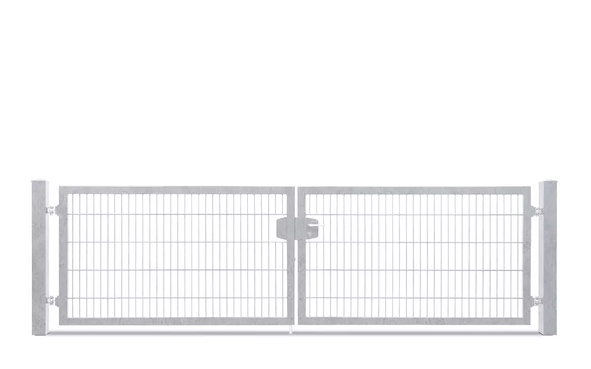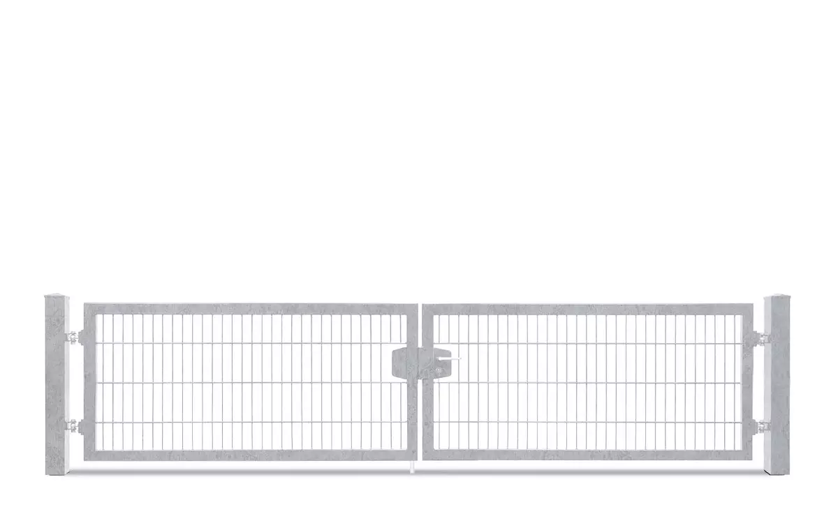 Technische Daten: Rahmen: Rechteckrohr 60/40/2 mm Füllung: Doppelstabgitter – MAX 8/6/8mm Torpfosten: Rechteckrohr 80/80/3 mm oder 100/100/3 mm Antrieb: Manuell Das zweiflügelige Einfahrtstor VARIO trend lässt Sie die Öffnungsrichtung nach DIN links und rechts durch entsprechende Pfostenmontage bestimmen. Das variable Einfahrtstor kommt als Komplettpaket mit Doppelstabfüllung von 8/6/8mm, einem Rahmen von 60/40 mm und den zugehörigen Torpfosten je nach Höhe des Tores von 80/80 mm oder 100/100 mm zu Ihnen nach Hause. Aus zahlreichen Torhöhen und Torbreiten können Sie das für Sie passende Tor auswählen. Das hochwertige Drehflügeltor ist durch seine 180 Grad Scharniere sehr flexibel und kann ganz nach Ihren Wünschen kombiniert werden. Besonderheiten sind die dreidimensional verstellbaren Bänder und das hochwertige Locinox-Schloss. Wählen Sie Ihr neues Tor aus den Varianten feuerverzinkt oder den RAL Farben moosgrün beschichtet und anthrazit beschichtet aus. Auf Wunsch können Sie auch Sonderfarben oder Effektfarben erhalten. Verarbeitungshinweise: Das Tor VARIO trend bietet Ihnen den höchsten Korrosionsschutz durch Feuerverzinkung im Tauchbad nach EN ISO 1461 und bei den RAL Farben durch zusätzliche Pulverbeschichtung. Bei einer feuerverzinkten Toranlage kann man bei normalen Witterungsbedingungen davon ausgehen, dass es 30 Jahre dauert, bis die schützende Zinkschicht abgetragen ist. Sind die Tore zusätzlich in RAL Farben kunststoffbeschichtet, erhöht sich der Schutz um viele weitere Jahre. Hinweise zu Ihrer Sicherheit: Bitte kontaktieren Sie gerne unsere Verkäufer. Diese beraten Sie kompetent und unverbindlich in allen Fragen rund um Ihre neue Toranlage!