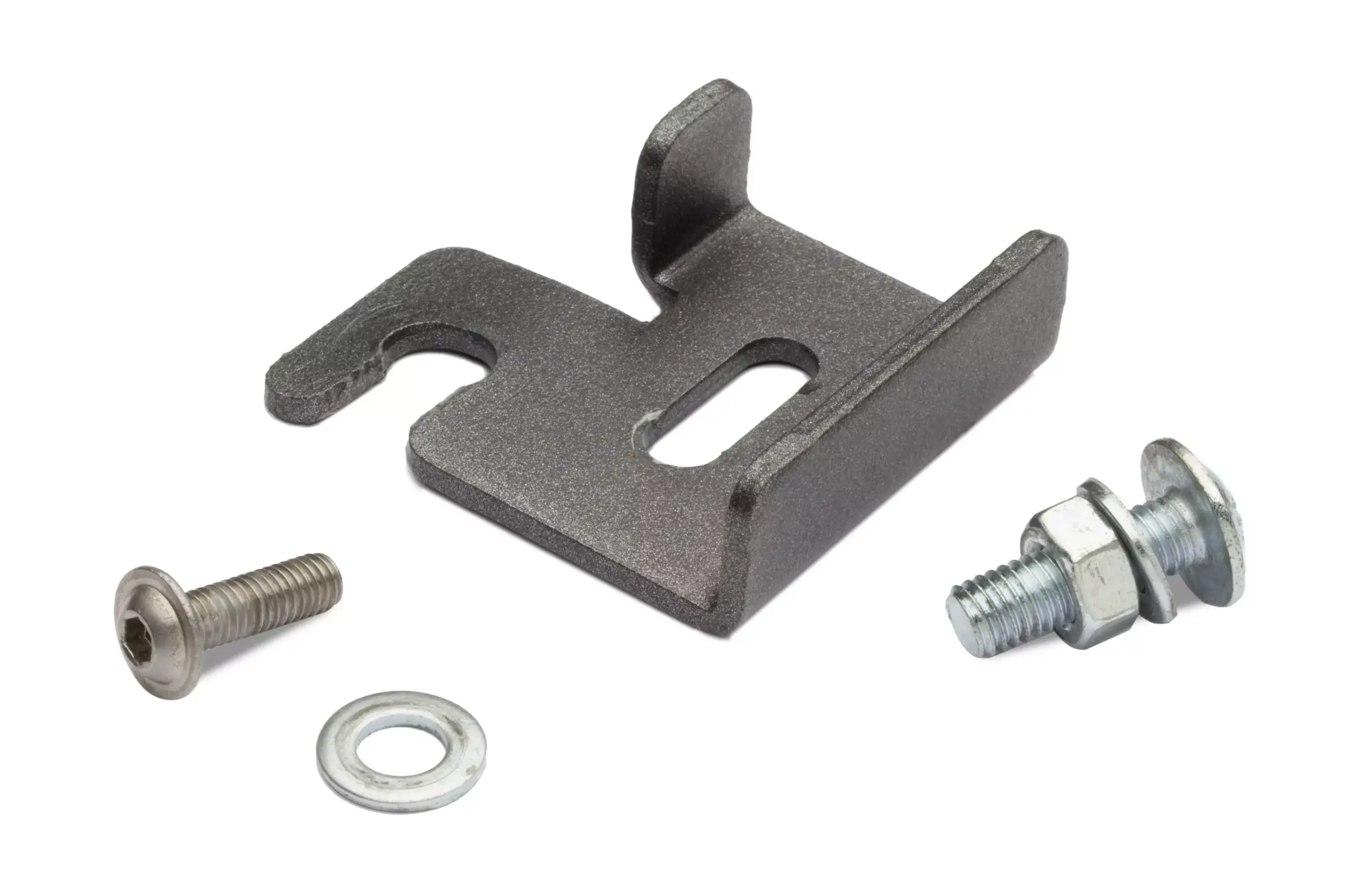 Montage-Element zur Befestigung der Designzaun-Zäune BOSTON oder MIAMI am Pfosten aus Stahl inkl. Befestigungsschrauben pulverbeschichtet DB703 (Feinstruktur Dunkelgrau)