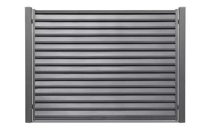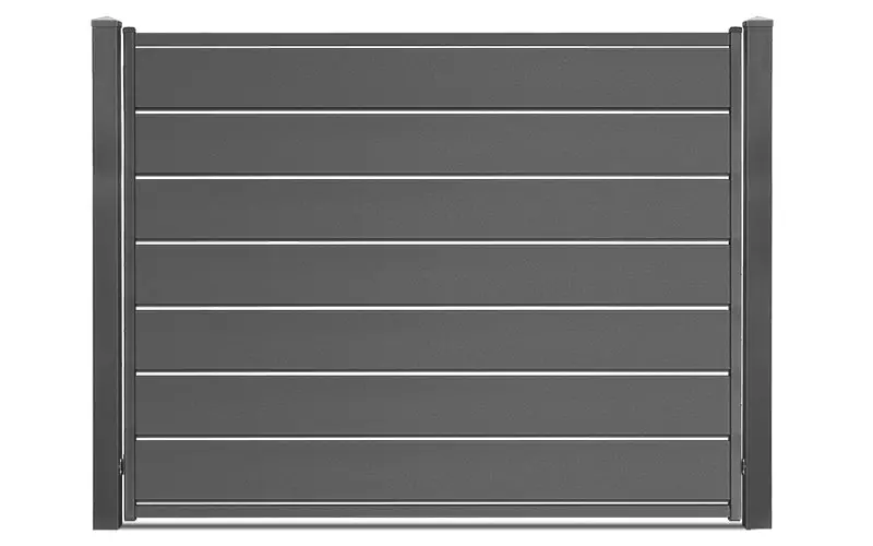 der Designzaun-Zäune BOSTON oder MIAMI am Pfostenaus Stahlinkl. Befestigungsschraubenpulverbeschichtet DB703