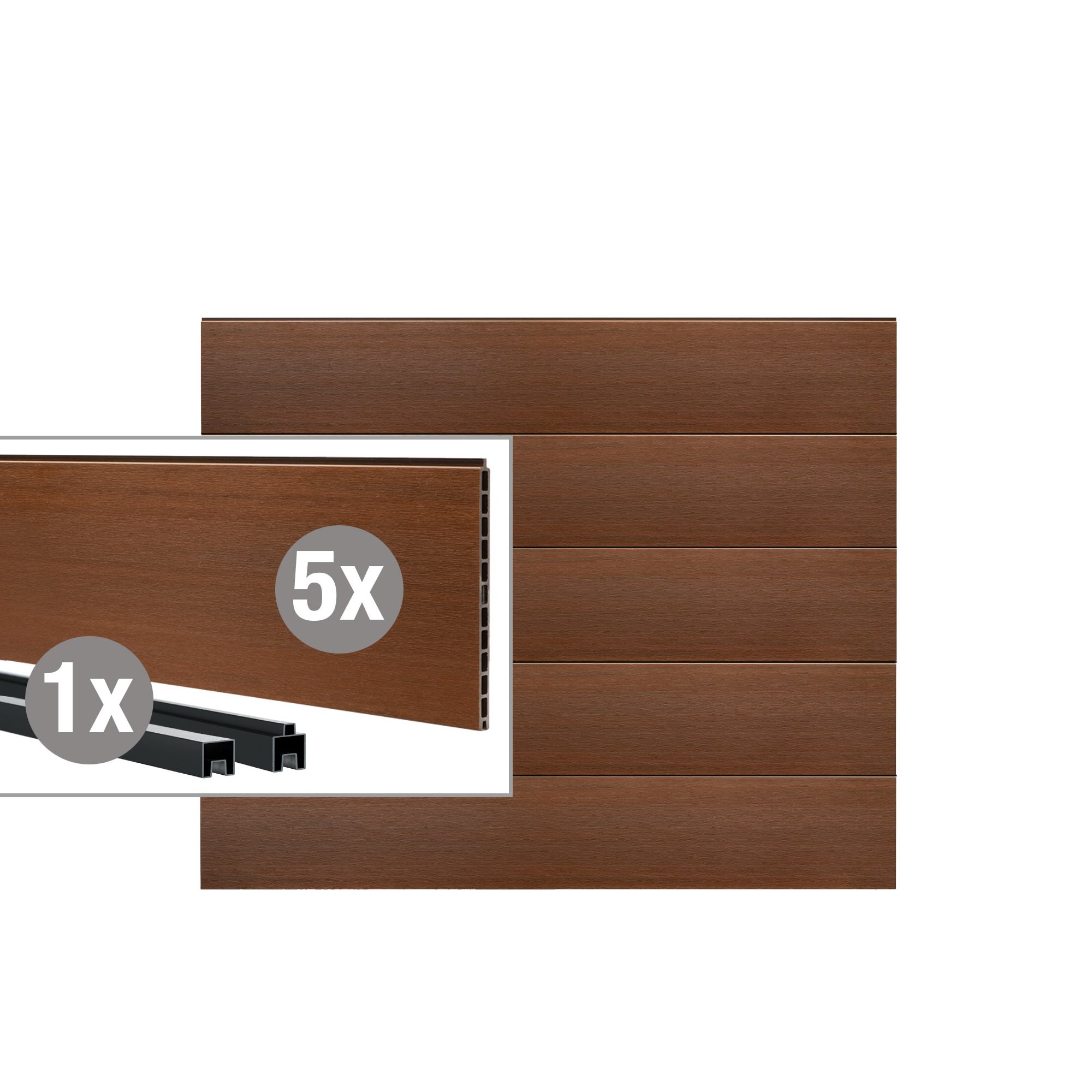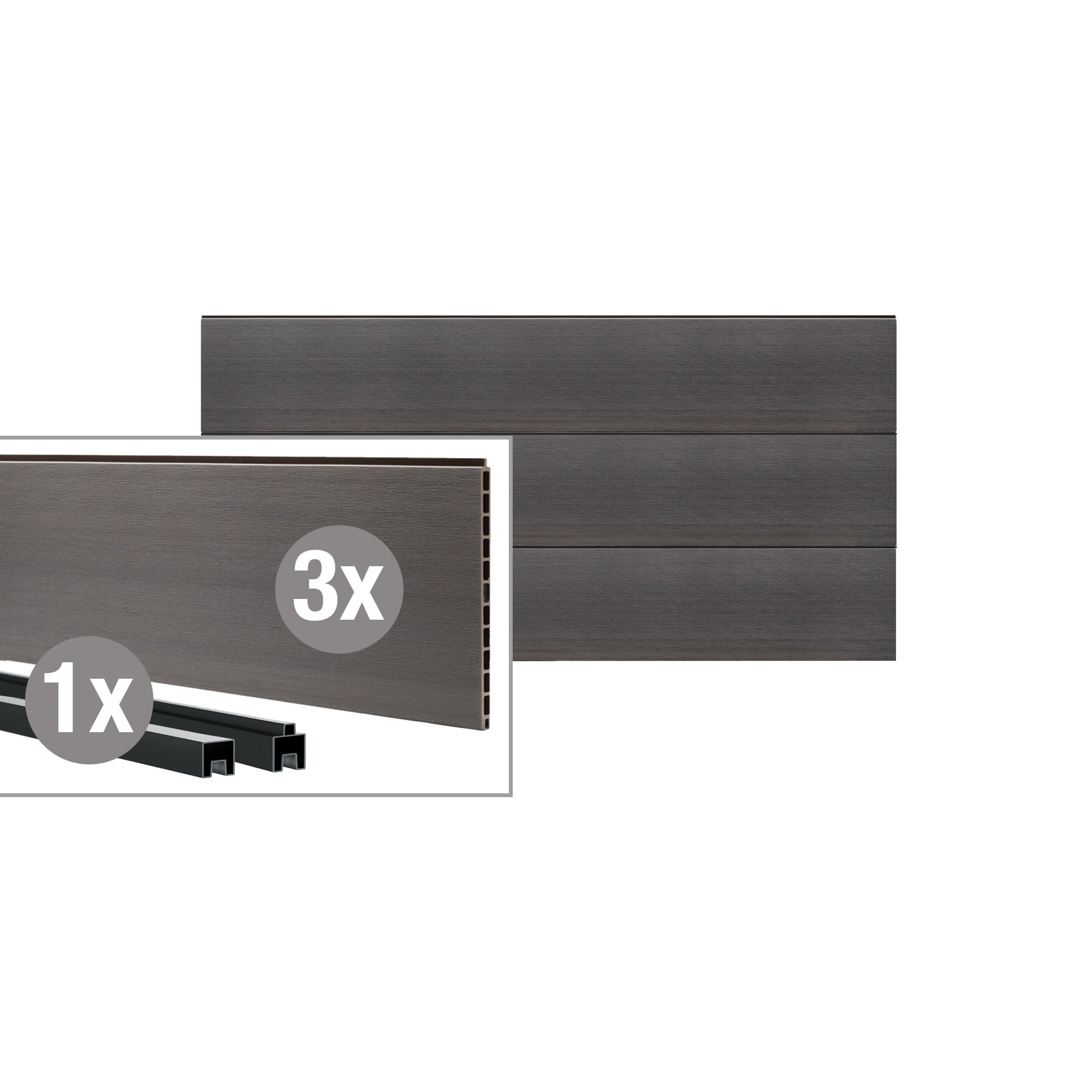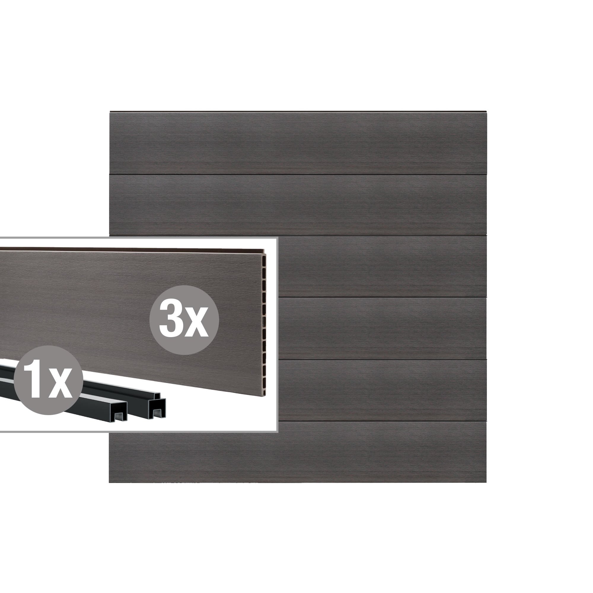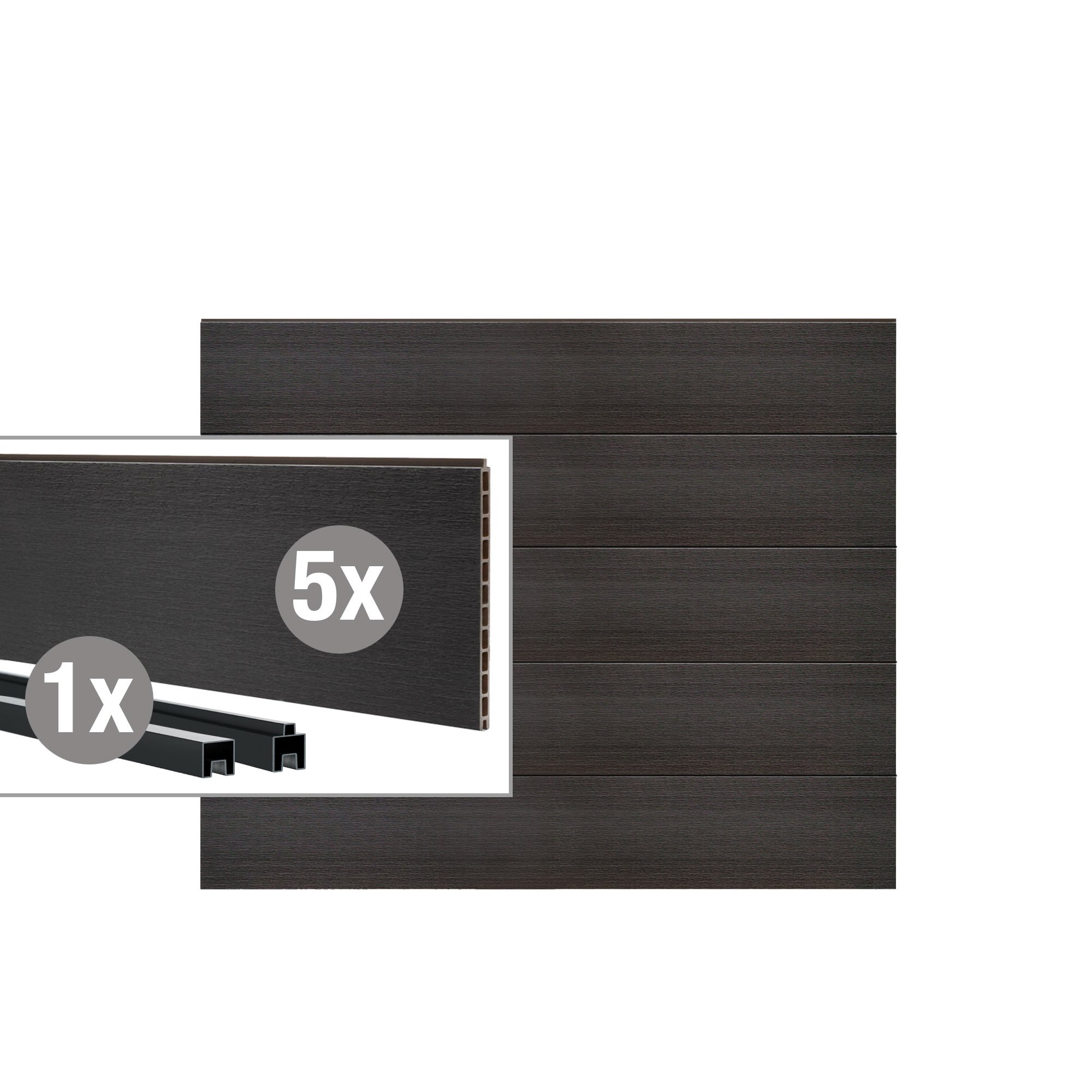 Das Steck-Profil besteht aus einem hochwertigen WPC (Wood Plastic Composite), das die Vorteile von Holz und Kunststoff vereint.
