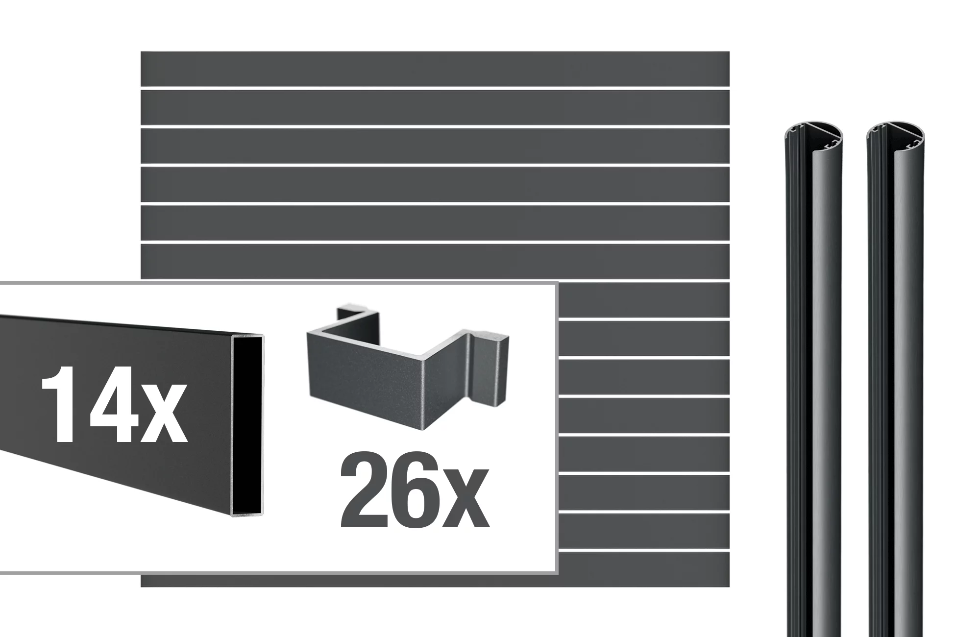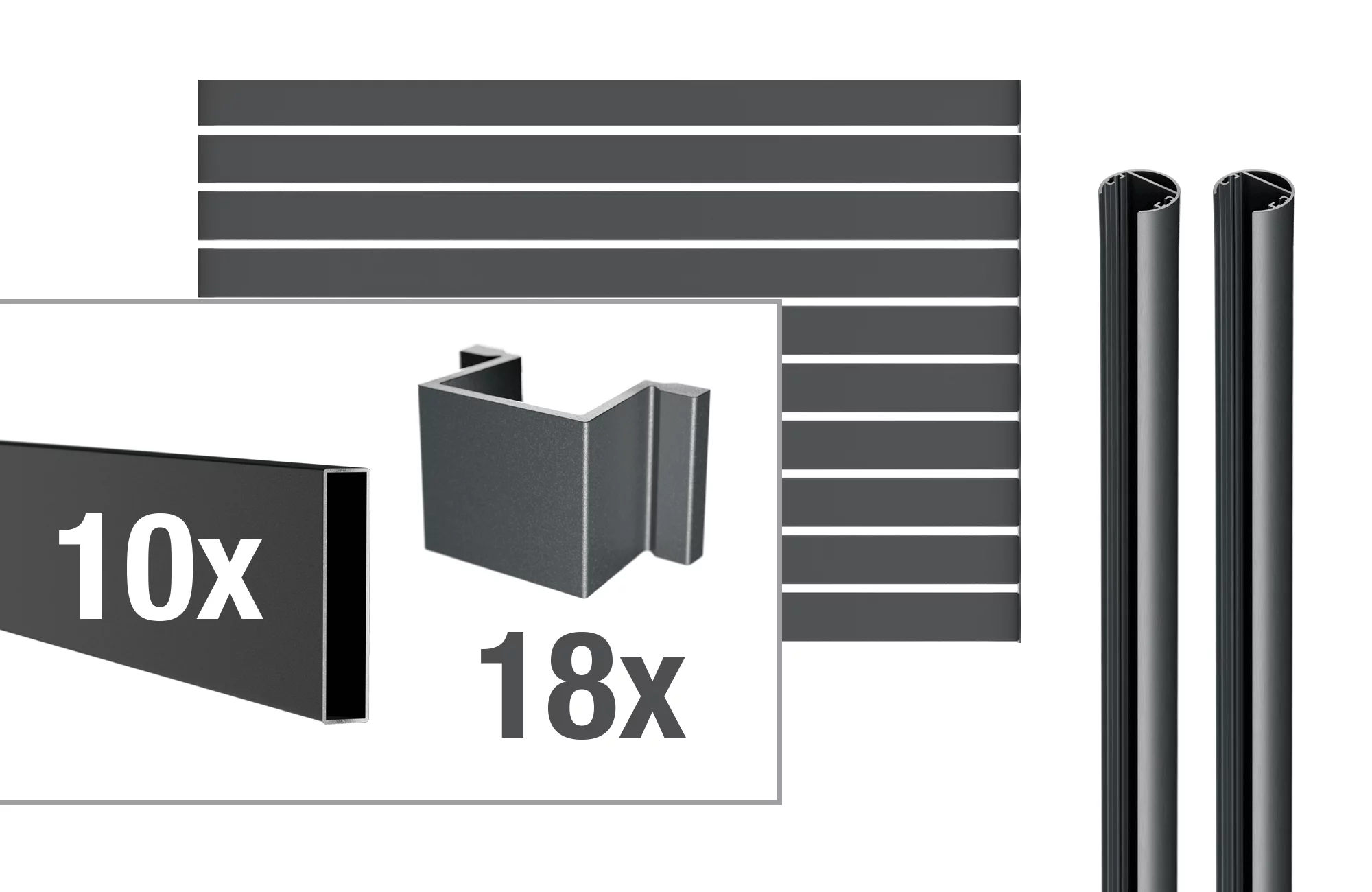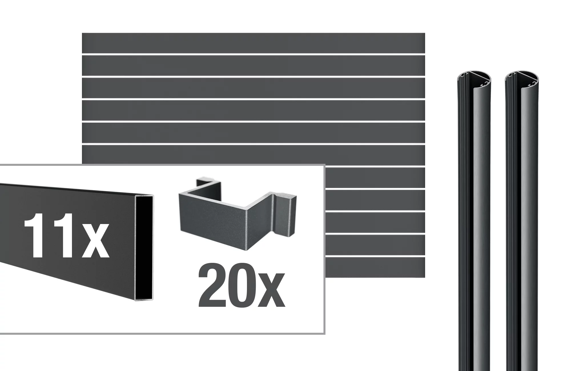 VIDUAL line 100 Aluminiumfüllung Rechteck-Profil (100 x 20 mm) mit Spalt D10 mm / D18 mm Das Aluminium-Rechteckprofil der VIDUAL Steckzaunserie bietet eine hochwertige und zeitlose Optik und zeichnet sich durch seine variablen Spaltenhöhen von 10 oder 18 mm aus, die durch das Einsetzen entsprechender Distanzstücke erreicht werden. Das Profil ist in der Größe 100 x 20 mm erhältlich und wird in RAL 7016 Anthrazitgrau Feinstruktur pulverbeschichtet geliefert. Sie möchten Ihren Traumzaun direkt konfigurieren? Dann können Sie sich in unserem Konfigurator Ihren Wunschzaun passend für Ihren Garten zusammenstellen. Entdecken Sie die unbegrenzten Möglichkeiten des VIDUAL-Steckzaunsystems! Zum Konfigurator