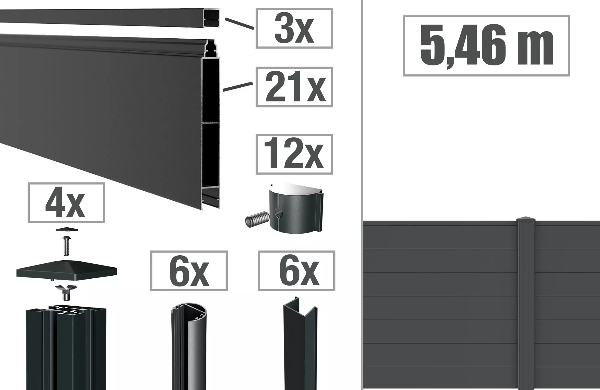 VIDUAL snap 140 | Aluminiumfüllung Klick-Profil in sechs verschiedenen Farben ***weitere Paketlängen auf Anfrage*** Entdecken Sie unser Aluminium Klick-Profil VIDUAL snap 140 ohne Spalt. Die Klick-Profile der Steckzaunserie VIDUAL ermöglichen eine unkomplizierte und schnelle Installation des Zauns. Sie eignen sich besonders gut für den Bau von langlebigen und blickdichten Sichtschutzzäunen im Außenbereich. Das Zaunpaket besteht aus folgenden Komponenten: Paneele snap 140 Abschlussleisten Pfosten 90/90/2mm inkl. Abdeckkappen und End-Nutensteinen Profiladapter ** Abdeckleisten ** Variante zum Aufdübeln: inkl. Fußplatten 90×90 mm bzw. 150×150 mm (ab Höhe 1400 mm) Innensechskantschlüssel 4,0 und 5,5 Zaunfeldhöhen von 950 – 1750 mm Gesamtbreiten mit Pfosten von 1,88 m – 35,89 m Aluminium und foliert oder beschichtet ** Artikel müssen ggf bauseits gekürzt werden