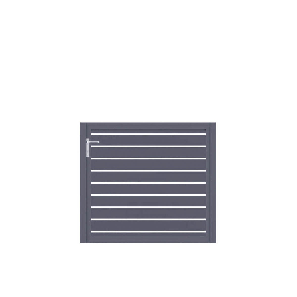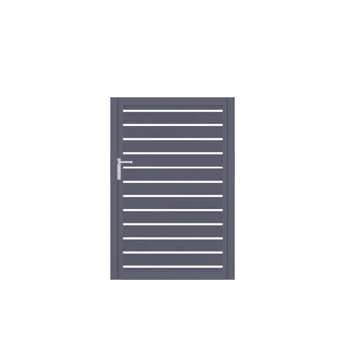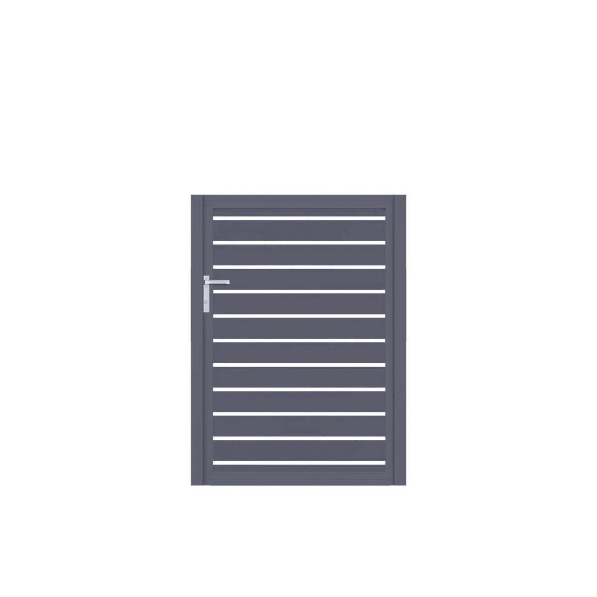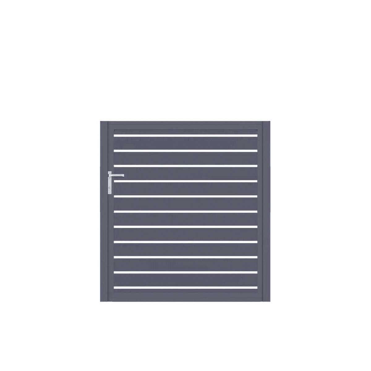 Suchst Du nach einer eleganten und langlebigen Lösung für Deinen Garten? Das VIDUAL swing line 100 1-fl Aluminiumzaun-Tor ist die perfekte Wahl, um Deinen Sichtschutzzaun aufzuwerten. Gefertigt aus hochwertigem Aluminium und pulverbeschichtet im edlen RAL 7016 (Anthrazitgrau Feinstruktur), verbindet es ansprechendes Design mit erstklassiger Funktionalität.