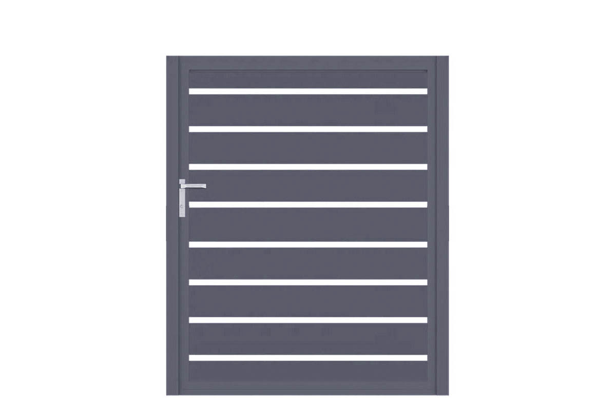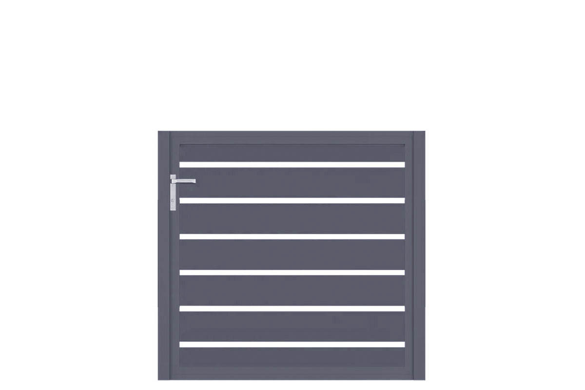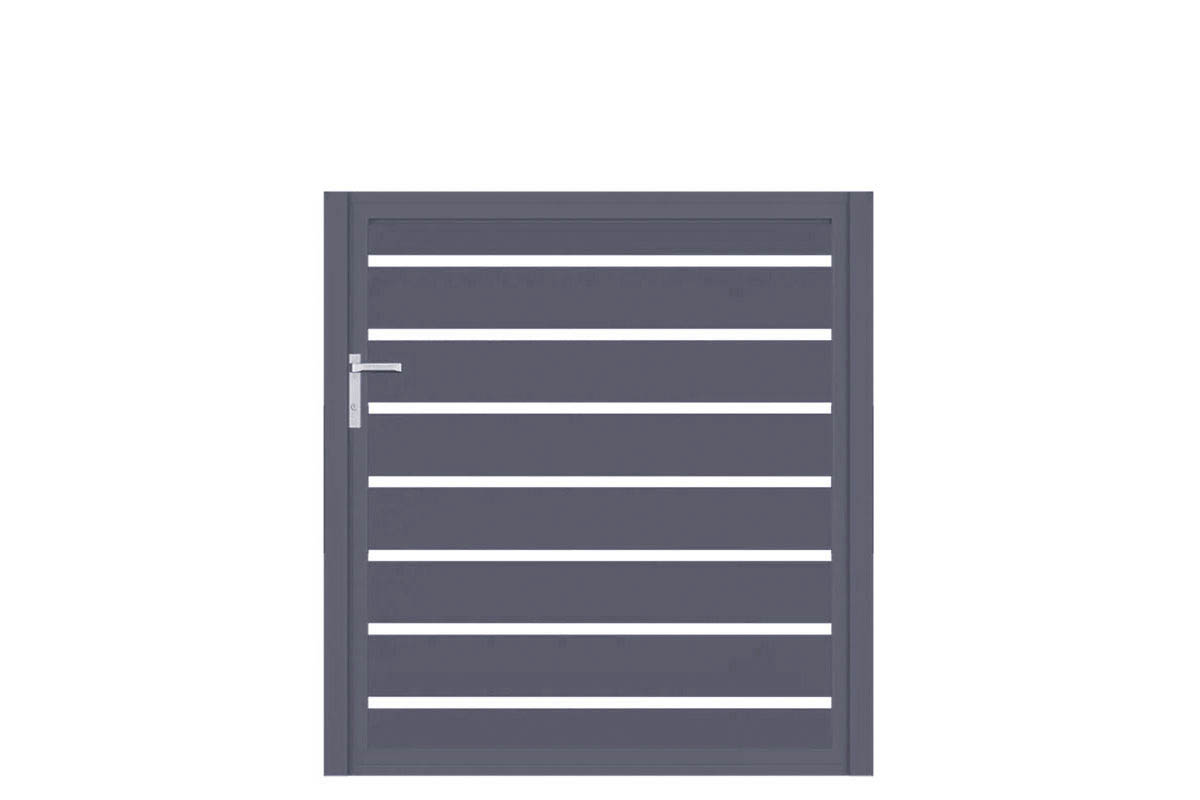 Zur Steckzaunserie VIDUAL bieten wir auch passende Sichtschutztüren an – selbst für indidviduell gestaltete Zäune ist die Konfiguration von passenden Toren möglich. Diese sind ebenso hochwertig verarbeitet wie unsere Zaunprofile und zeichnen sich durch ihre einfache Montage aus. Die Tore sind die ideale Ergänzung für den Eingang mit einer vollständigen und zuverlässigen Sichtschutzlösung zu Ihrem Garten. Füllungen Wahlweise Füllungen aus der VIDUAL Serie Schloss-Set Einsteckschloss inkl. Profilzylinder Aluminium Drückergarnitur Langschild Torrahmen Ober-/Unterholm 56 x 68 mm Scharnier-/Schlossholm 60 x 70 mm durchgehende Spaltabdeckleisten Anschraubblock / Schrauben Material: Aluminium Pfosten Direkte Anbindung an den Zaunpfosten Scharnierset Türöffnung bauseits 180° 3D-Schanieraufhängung U-Anschraublasche inkl.Scharniernutenstein M12 Augenschraube LOCINOX Anschraublasche mit Quick-Fix Set Torrahmenfarbe RAL 7016 Anthrazitgrau Feinstruktur