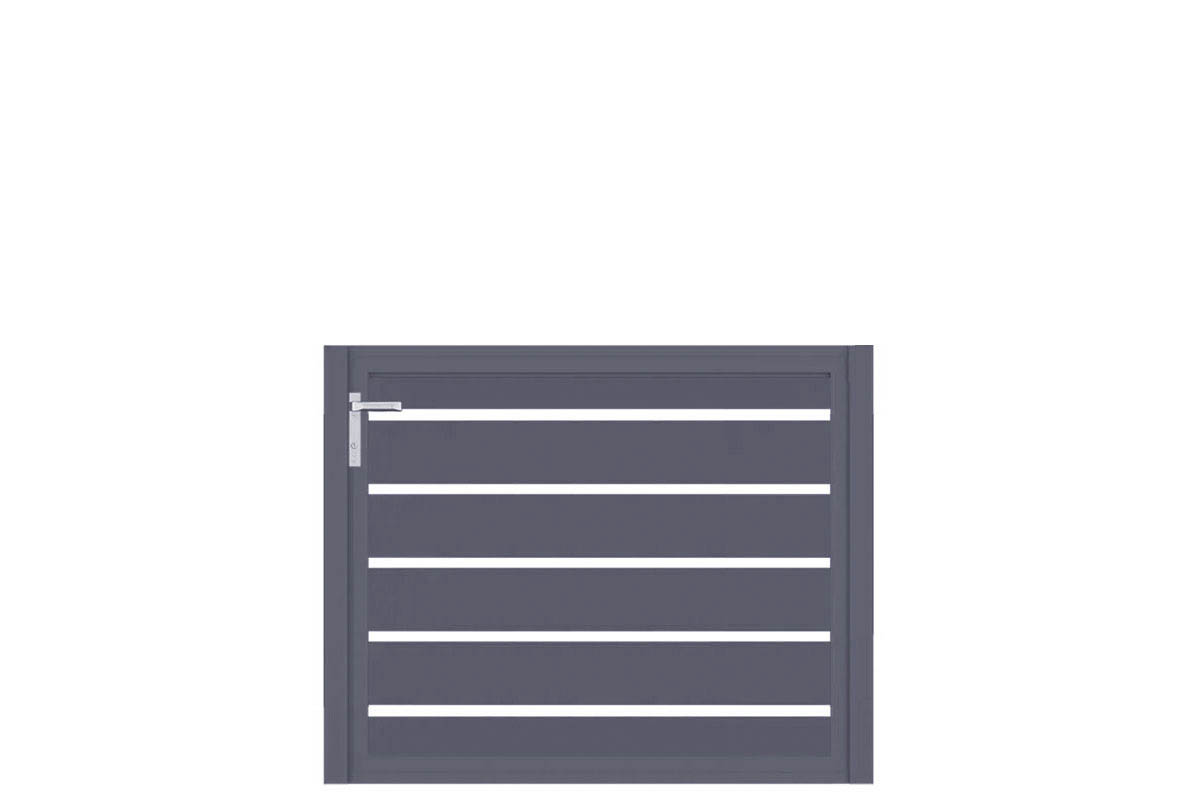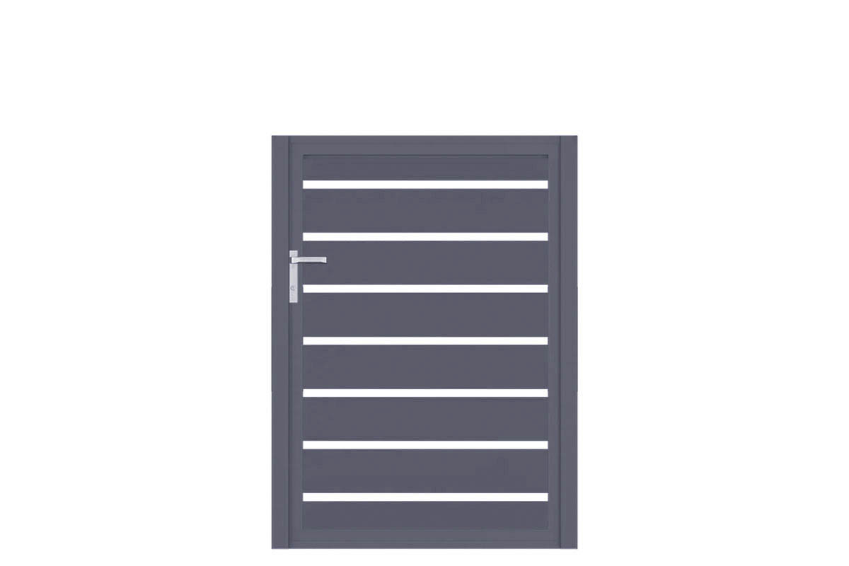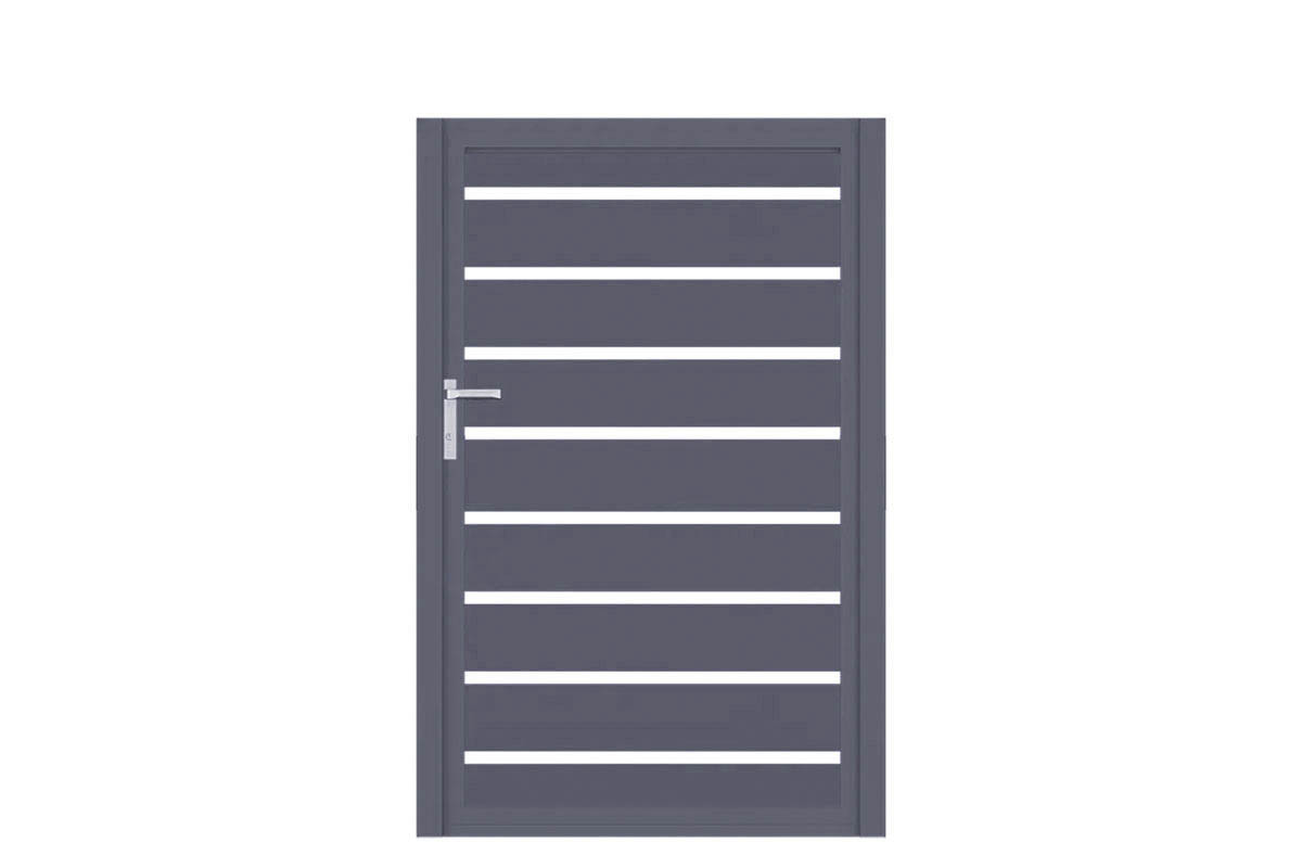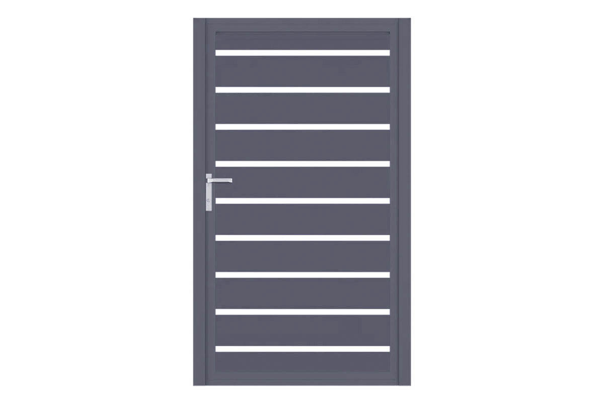 Zur Steckzaunserie VIDUAL bieten wir auch passende Sichtschutztüren an – selbst für indidviduell gestaltete Zäune ist die Konfiguration von passenden Toren möglich. Diese sind ebenso hochwertig verarbeitet wie unsere Zaunprofile und zeichnen sich durch ihre einfache Montage aus. Die Tore sind die ideale Ergänzung für den Eingang mit einer vollständigen und zuverlässigen Sichtschutzlösung zu Ihrem Garten. Füllungen Wahlweise Füllungen aus der VIDUAL Serie Schloss-Set Einsteckschloss inkl. Profilzylinder Aluminium Drückergarnitur Langschild Torrahmen Ober-/Unterholm 56 x 68 mm Scharnier-/Schlossholm 60 x 70 mm durchgehende Spaltabdeckleisten Anschraubblock / Schrauben Material: Aluminium Pfosten Direkte Anbindung an den Zaunpfosten Scharnierset Türöffnung bauseits 180° 3D-Schanieraufhängung U-Anschraublasche inkl.Scharniernutenstein M12 Augenschraube LOCINOX Anschraublasche mit Quick-Fix Set Torrahmenfarbe RAL 7016 Anthrazitgrau Feinstruktur