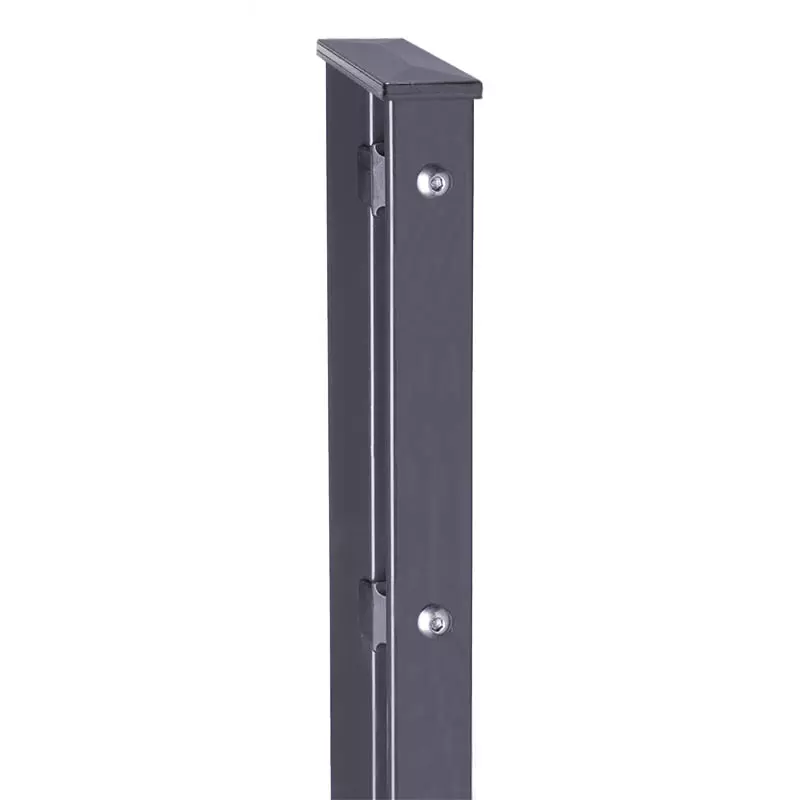 Technische Daten Längen: von 1300 mm – 2600 mm Stahl feuerververzinkt (nach DIN1461) oder verzinkt / pulverbeschichtet Farben: zink, RAL6005 (moosgrün), RAL7016 (anthrazit) Rechteckrohr; 60/40/1,5 ab 2200 60/40/2 mit profilierter Abdeckleiste und Edelstahlschrauben Alu-Abdeckkappe mit Überstand